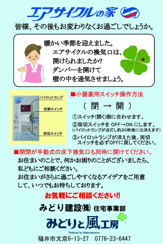 エアサイクル住宅にお住いの方は換気口を開けられましたか?