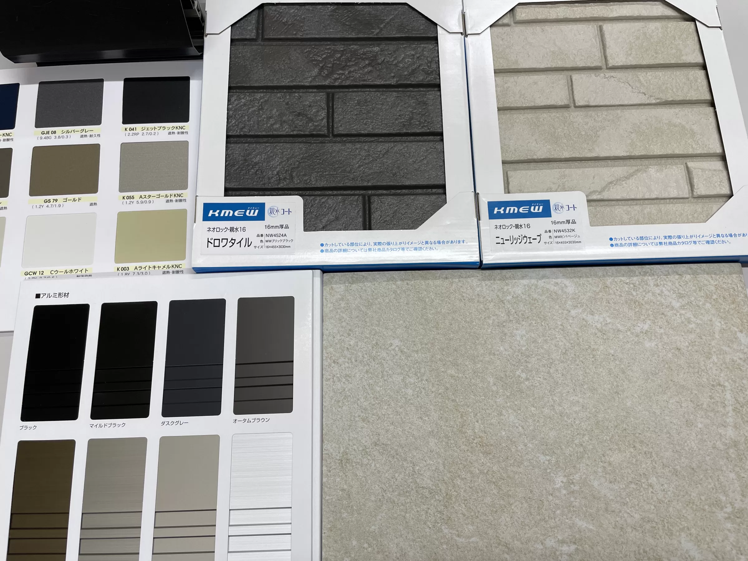 画像で見るのと実物では少し色が違ったり、光の加減や影で見え方が違ったりするので、イメージパースを見ながらカタログやサンプルで確認して決めていきました。