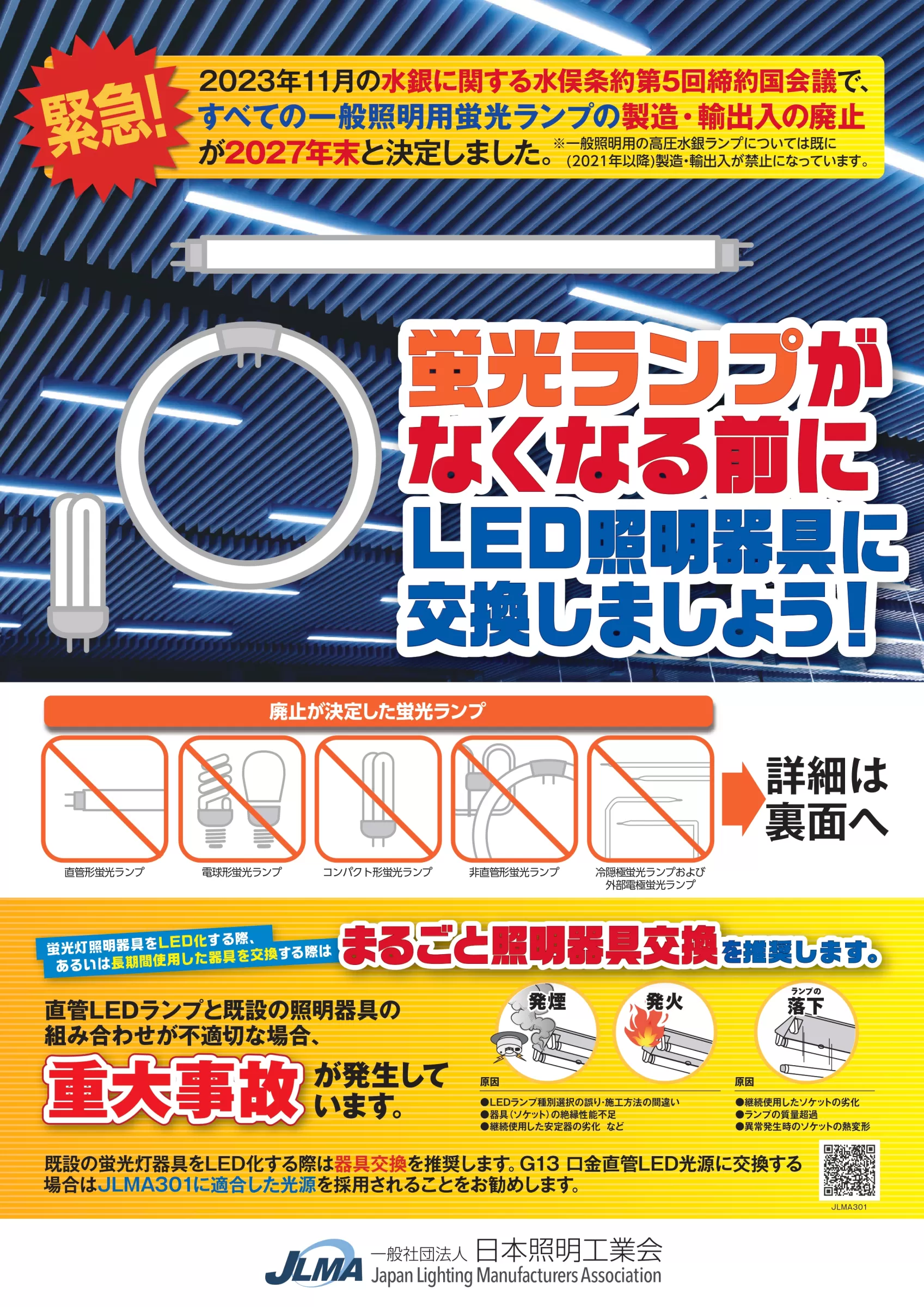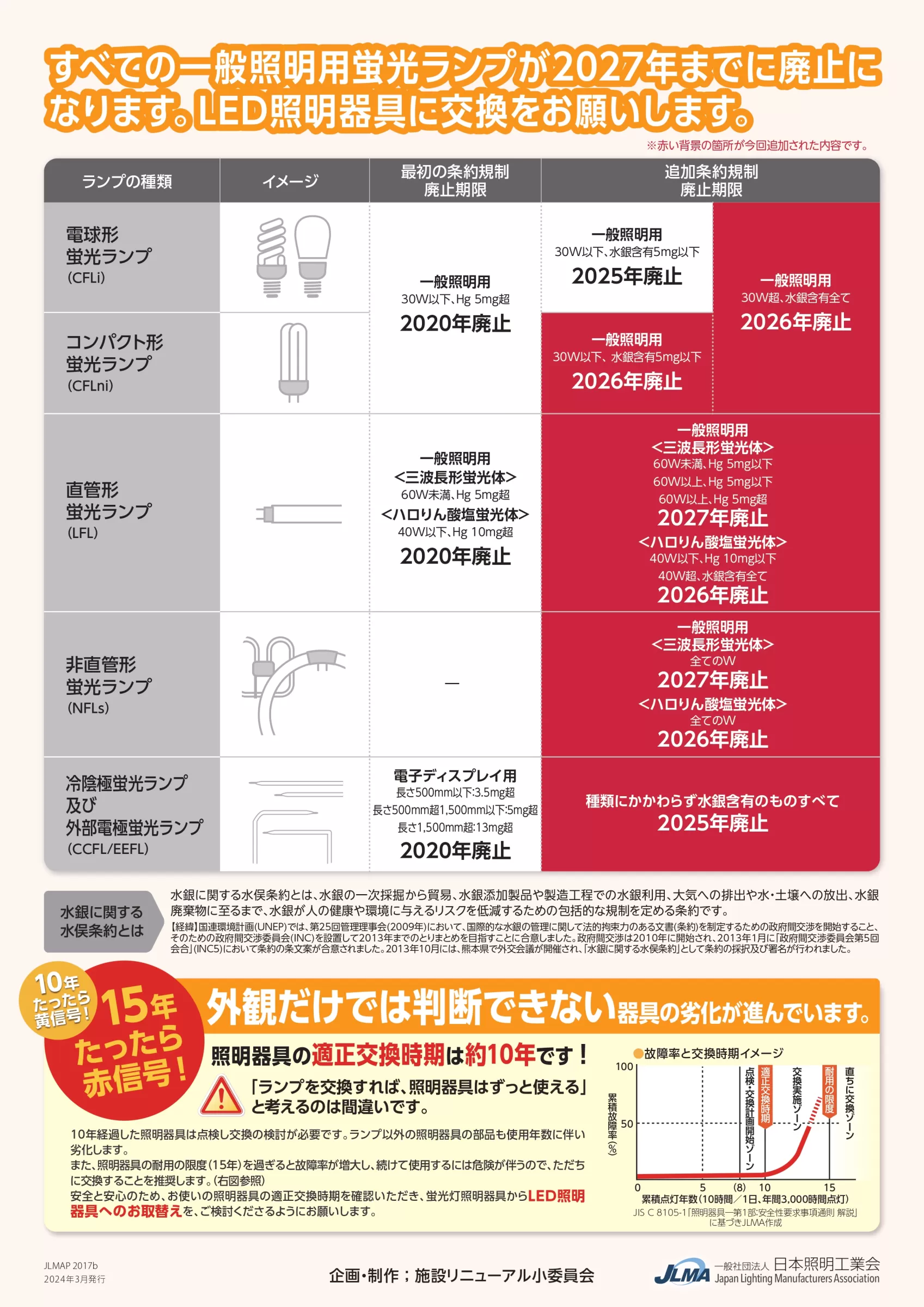 2023年11月に開かれた水銀に関する水俣条約第5回締約会議で、すべての一般照明用蛍光ランプの製造・輸出入を2027年末までに廃止することが決定されたためです。