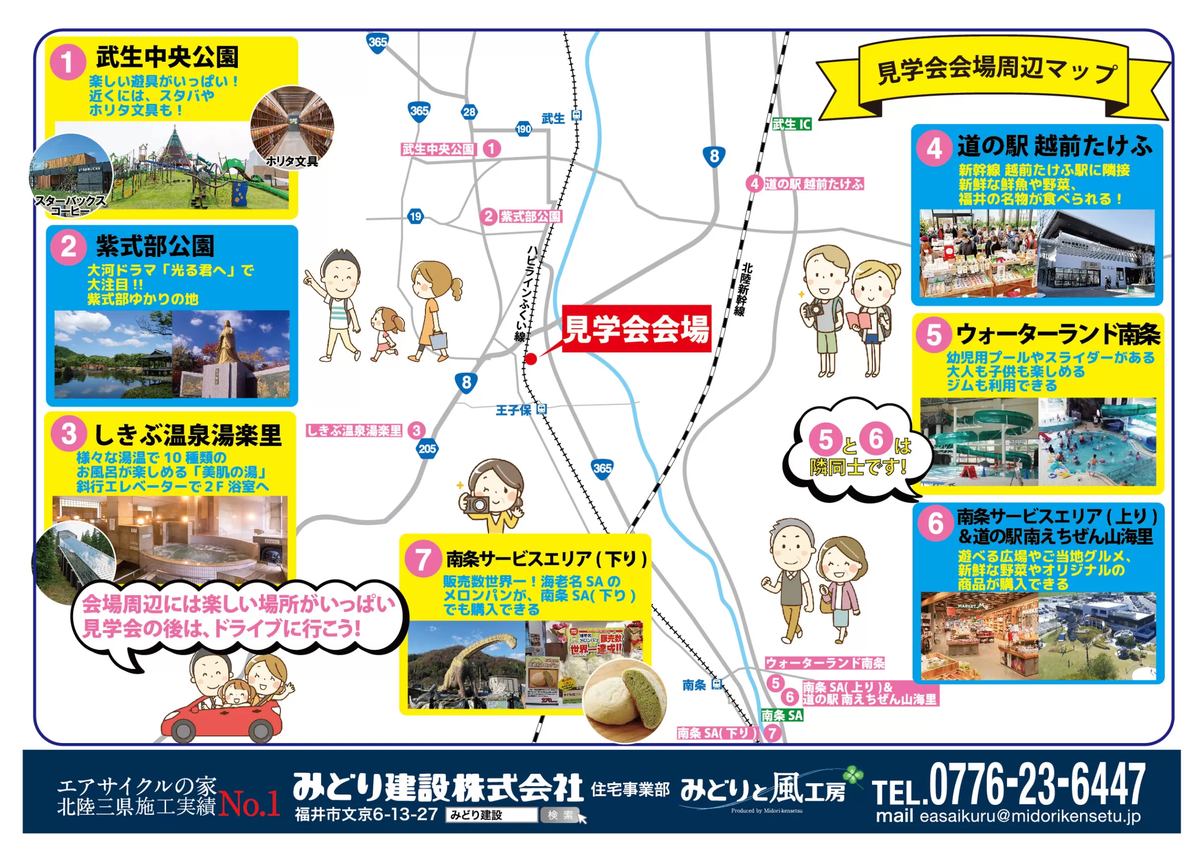 また、完成見学の後は周辺マップを参考に、ドライブに出かけてみてはいかがでしょうか?