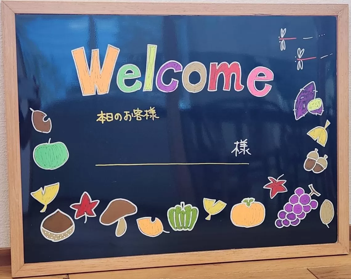 そして、みどり建設の玄関も秋の味覚満載のウェルカムボードになっています!