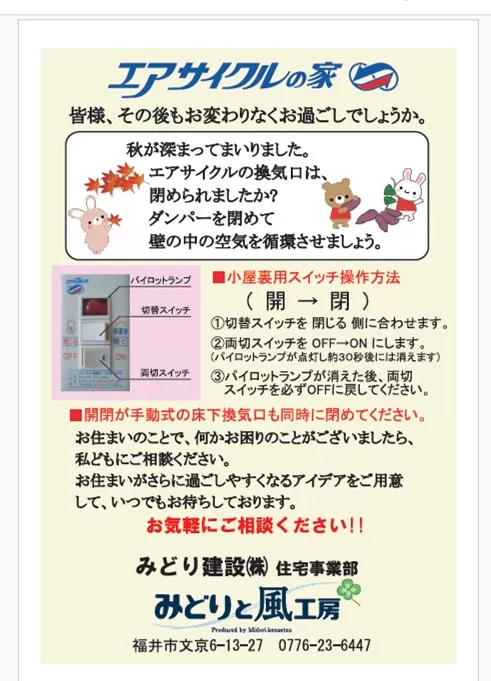 先日、エアサイクル住宅にお住いの方へ換気口についてのはがきを郵送しました✨