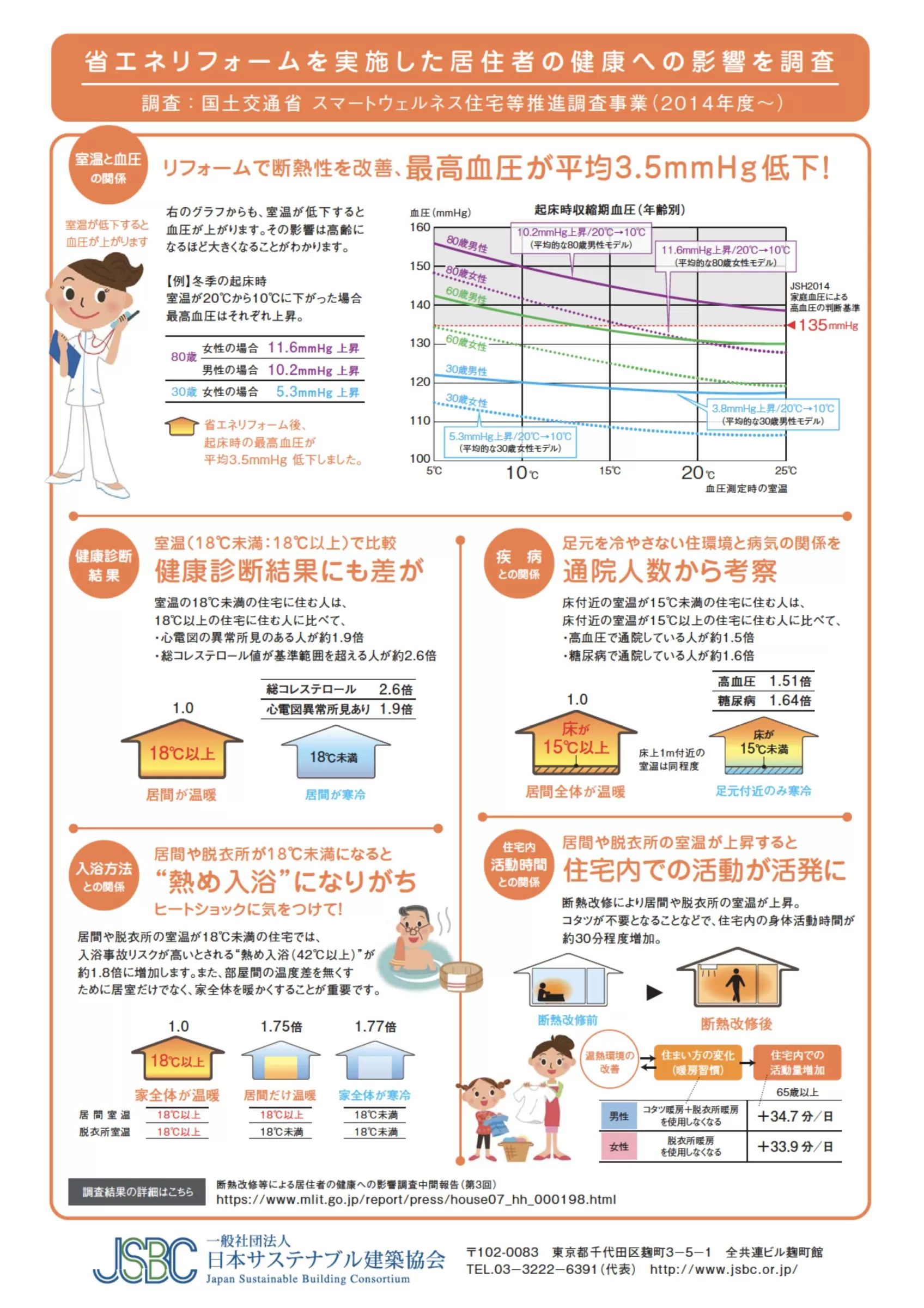 日本サステナブル建築協会が発表している調査結果によると、ヒートショックを防ぐだけでなく、高血圧症の防止や循環器疾患の予防などにもつながるそうです。