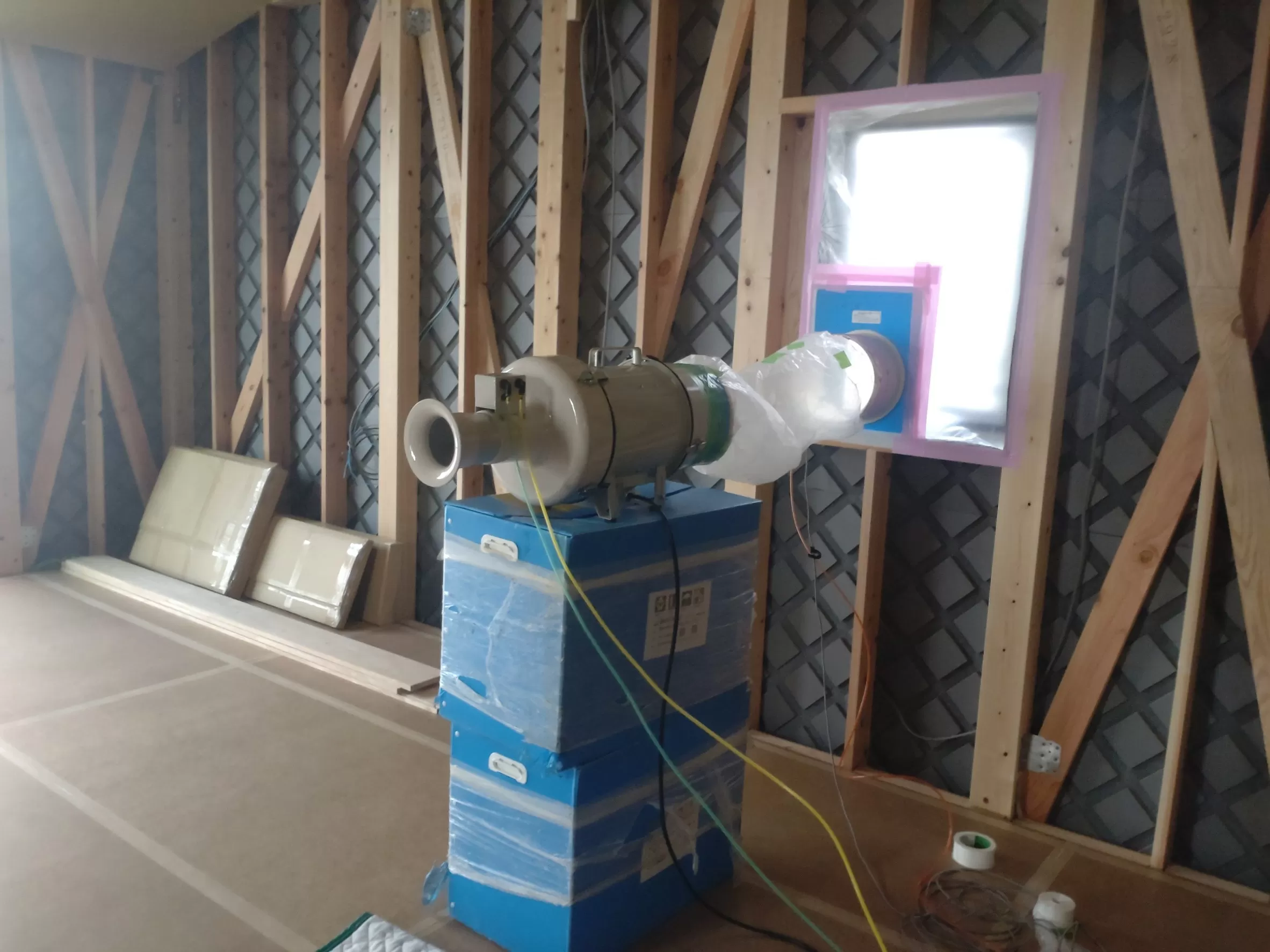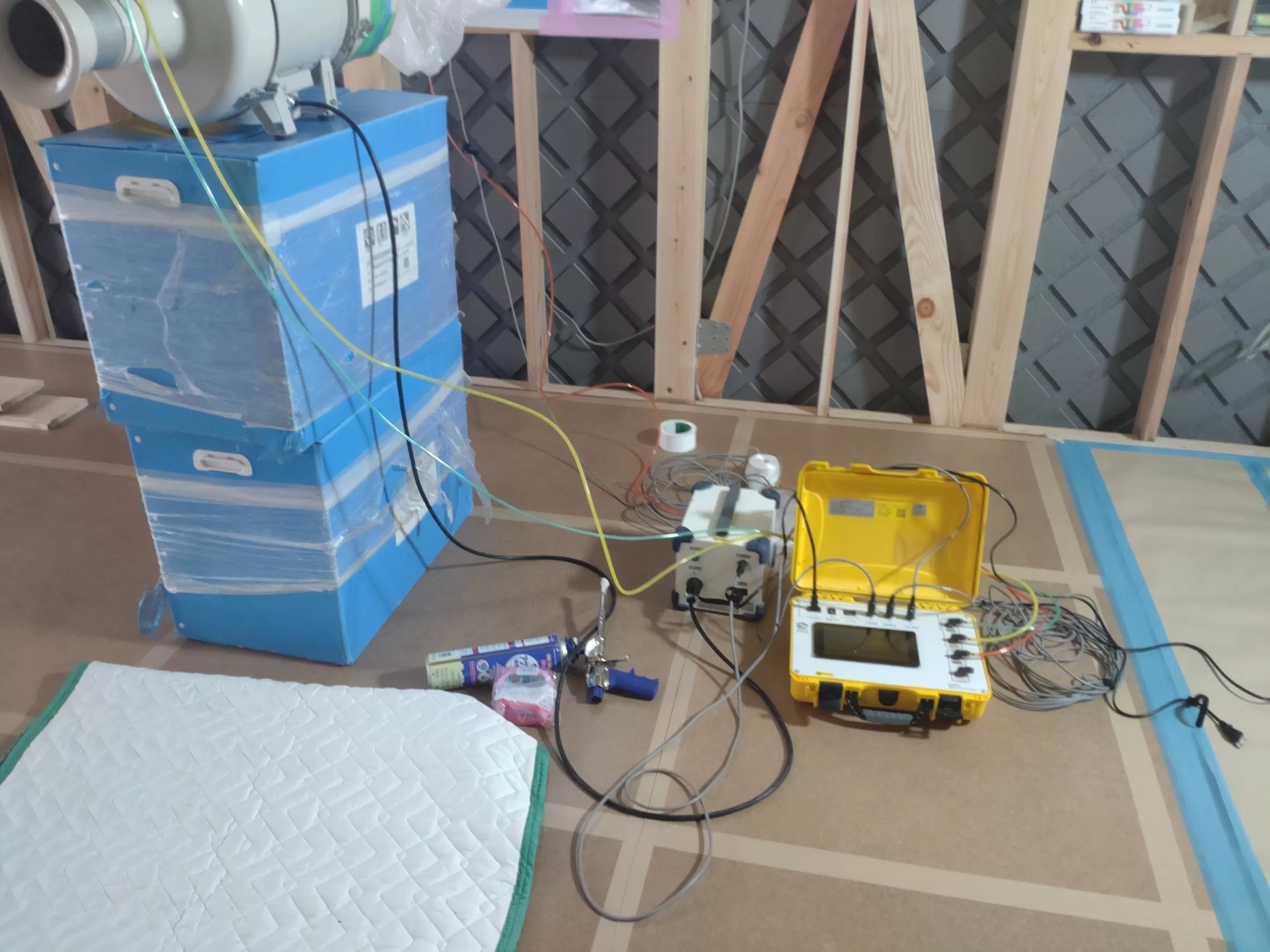 福井市で工事中のエアサイクルの家で気密測定を行いました。