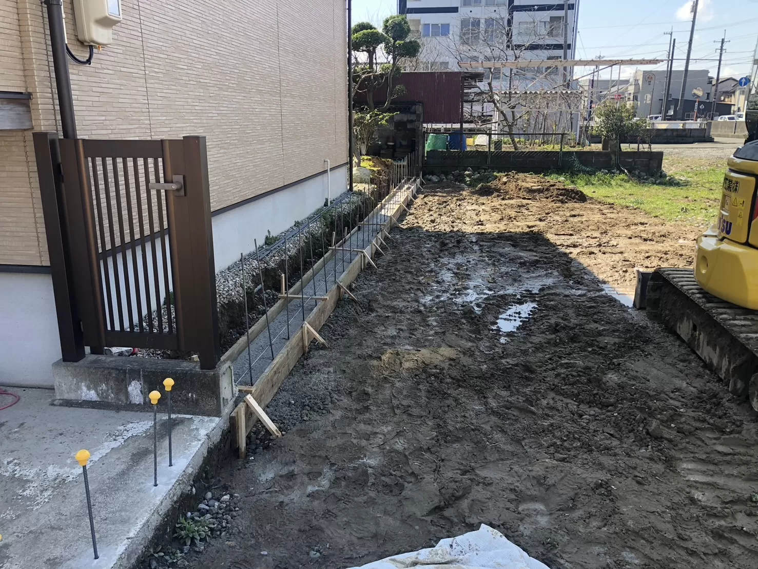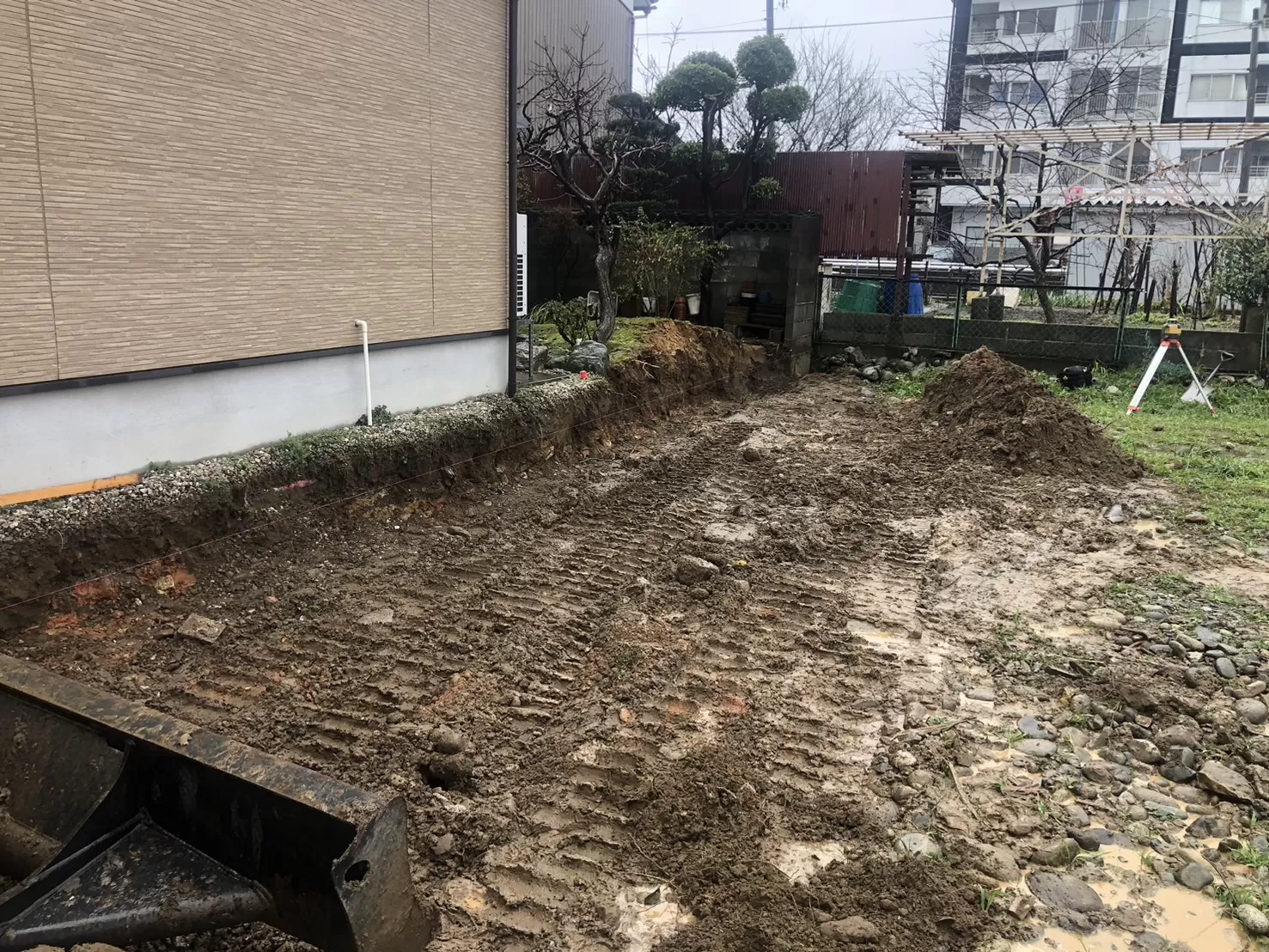 隣の家の解体で土がこぼれていくのを止めるために今回ブロックを積むことになりました。