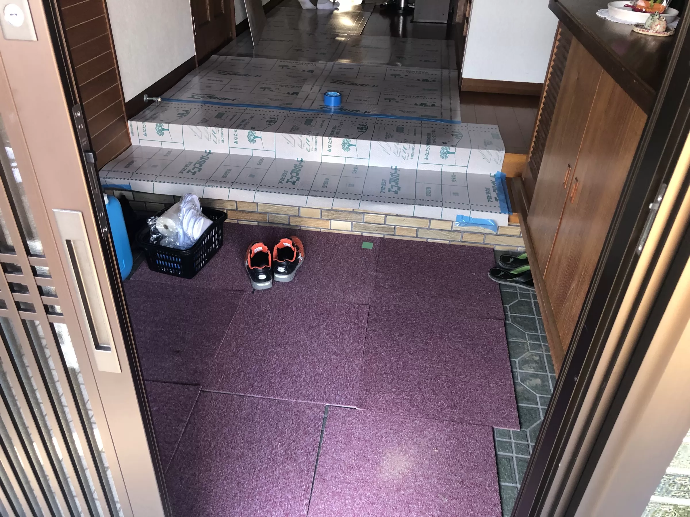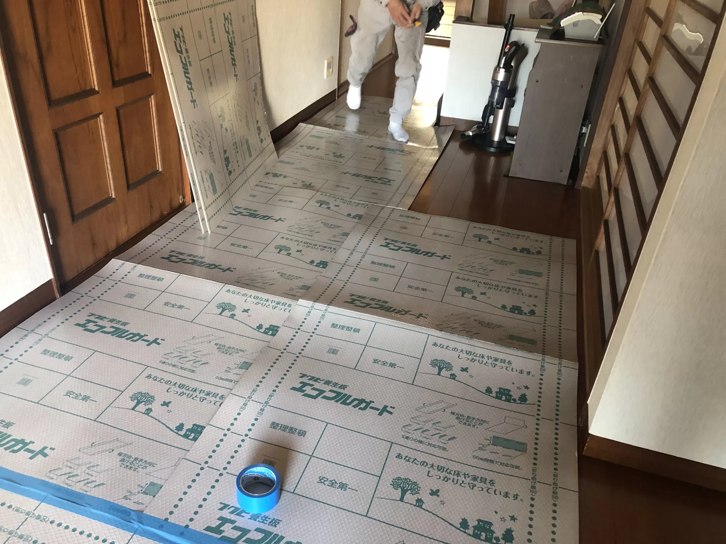 「養生(ようじょう)」とは、工事中に傷や汚れから家を守るための保護作業 のことです。