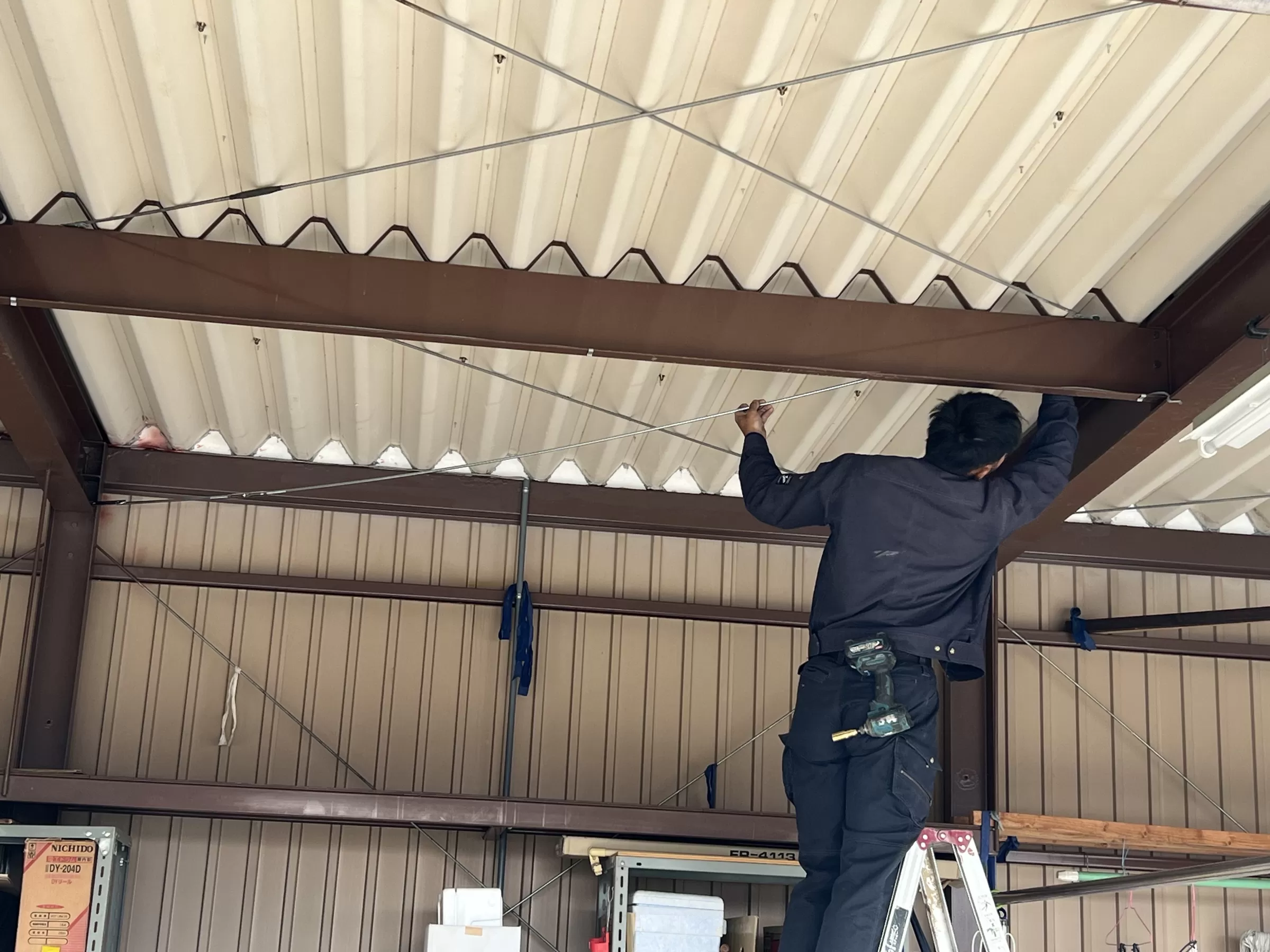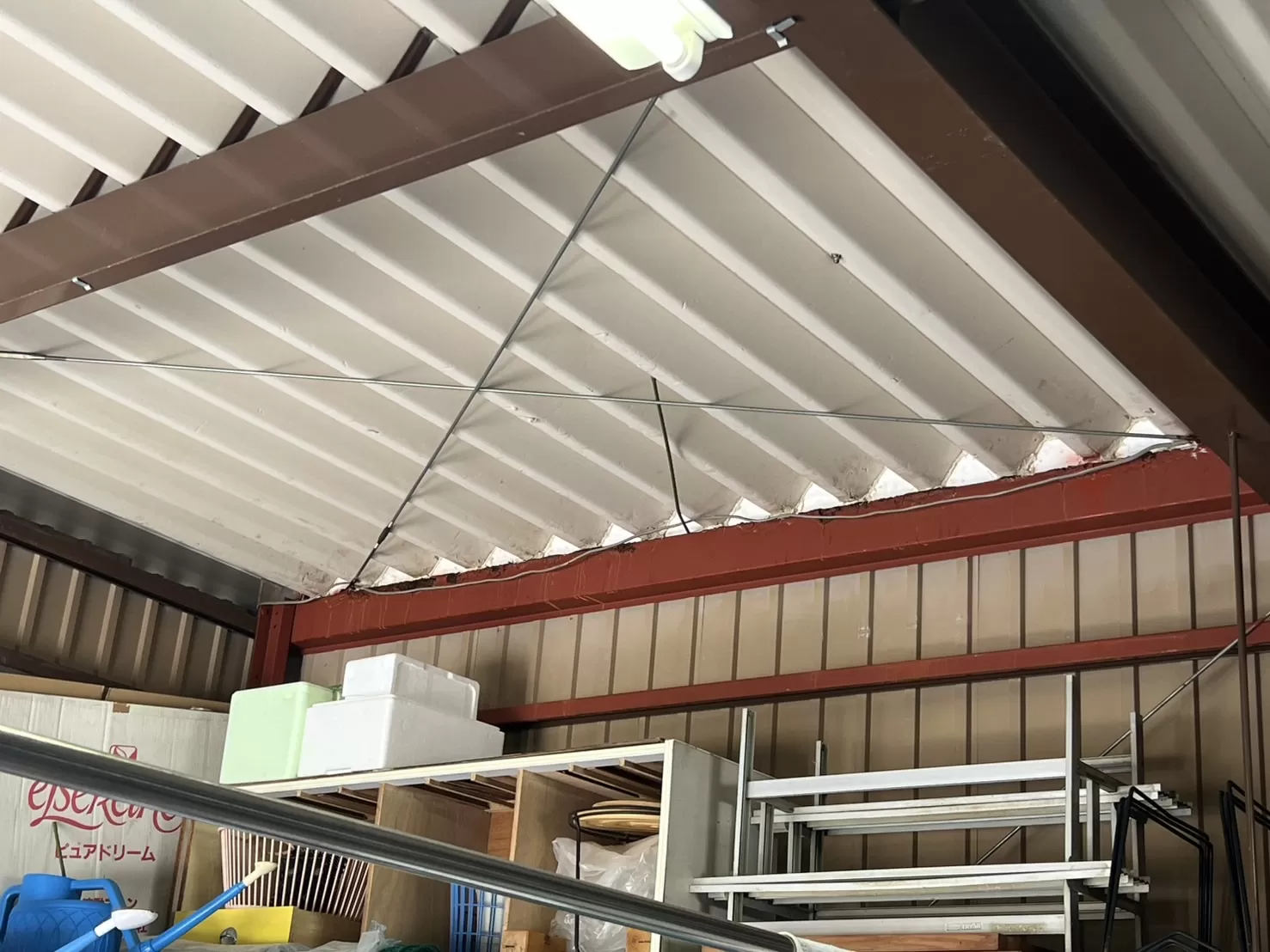 ↑写真の天井に、たすき掛けのように取り付けてある部材がブレースです。
