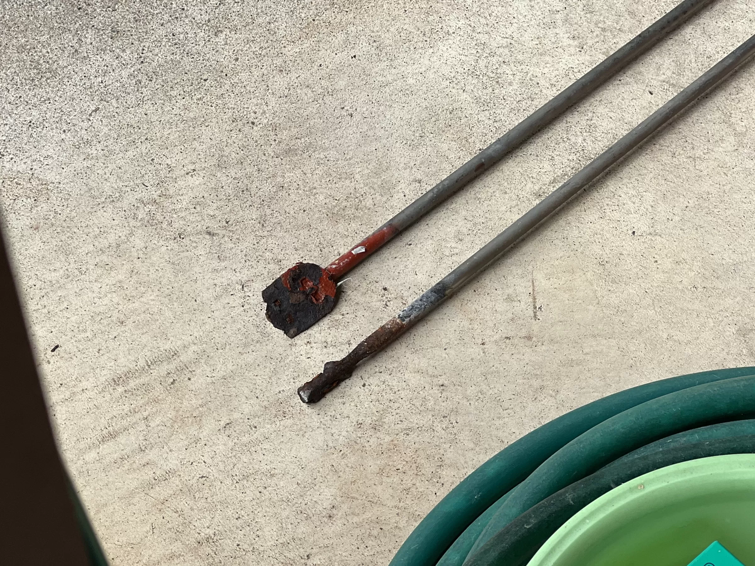 見てみると、ブレースと呼ばれる斜め部材が外れていました。