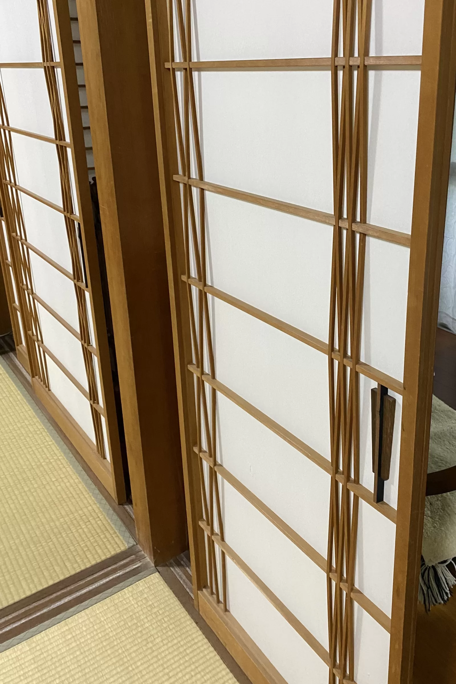そこで目を引いたのが、今ではあまり見かけない、珍しいデザインの障子組子です。