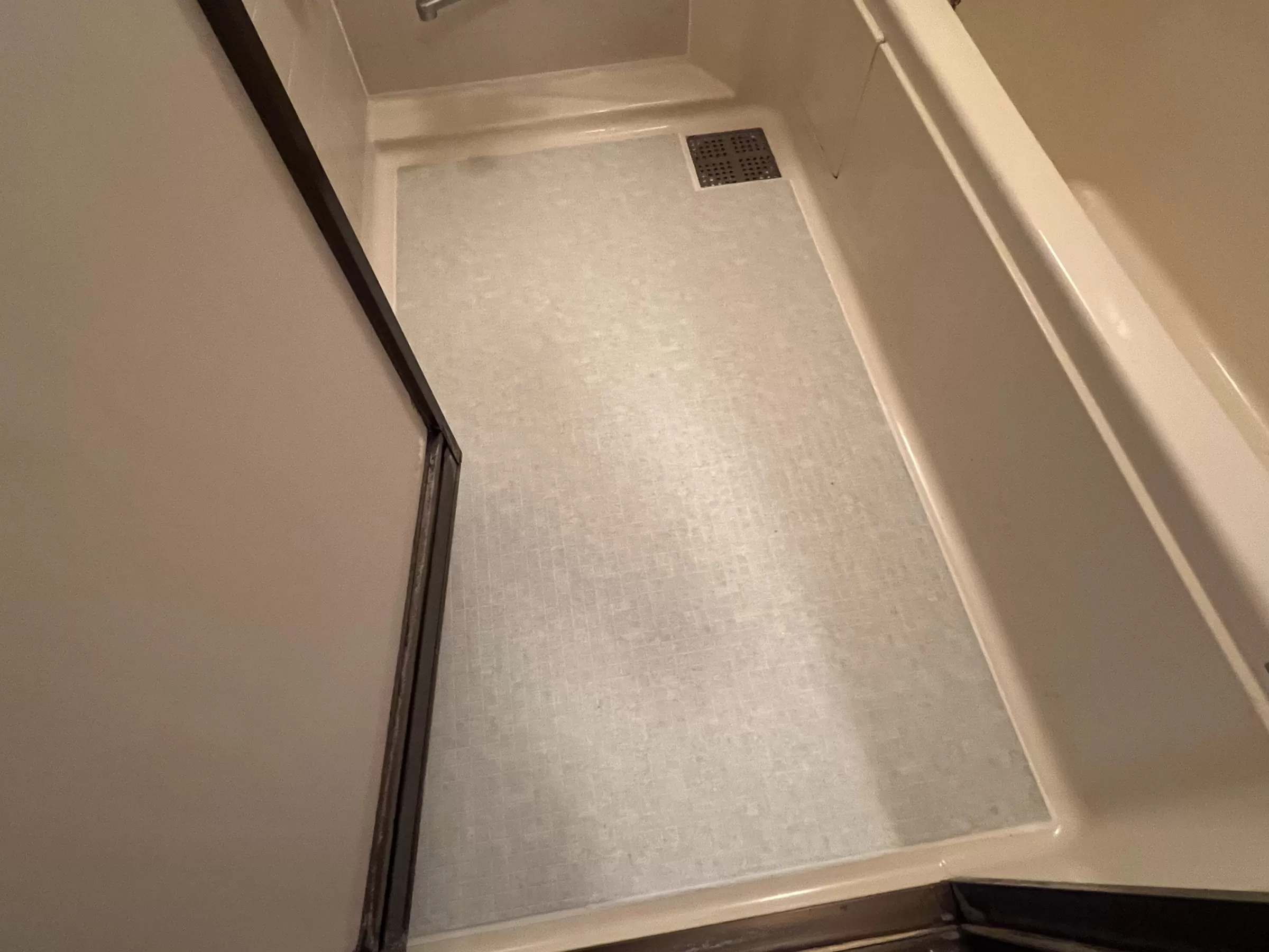 また、タオルの床なので冬場はとても冷たくヒートショックが心配とのことで、バスナシリーズという浴室用ビニル床シートを貼るご提案をさせていただきました。
