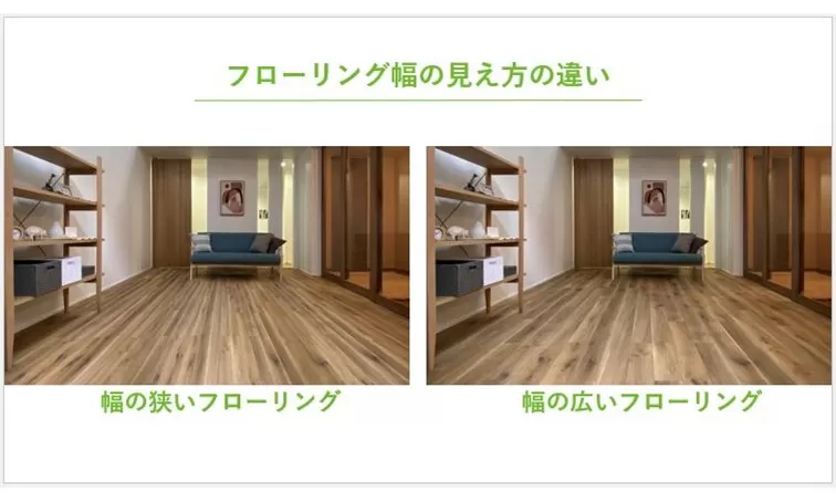 幅の狭いフローリングと広いフローリングを比べてみると、いかがでしょうか?