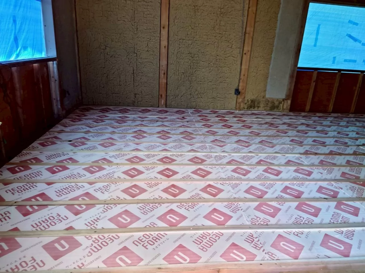 天井・壁・床を解体し、高性能の断熱材で部屋全体を包み込みました。