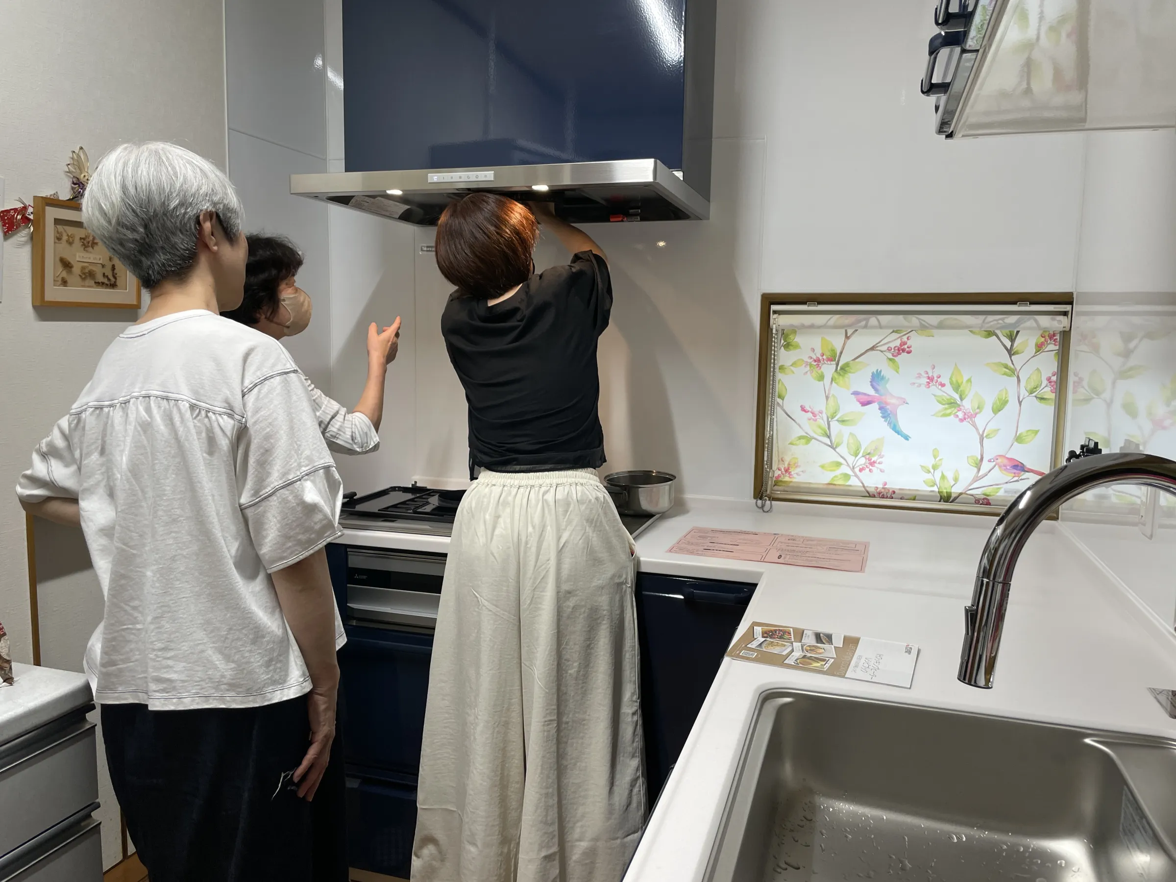 主に使われるのは奥様と娘様だそうですが、ご主人も一緒にIHヒーターを触ってみたり、引き出しを開け閉めしたり、みなさんでキッチンでワイワイされていてとても楽しそうでした。