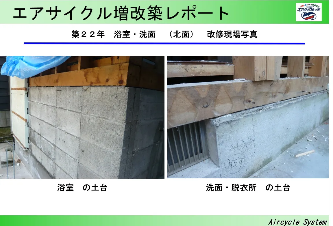 前回でもお話しましたが湿気の多いお風呂場廻りで木材の腐れは確認できませんでした。