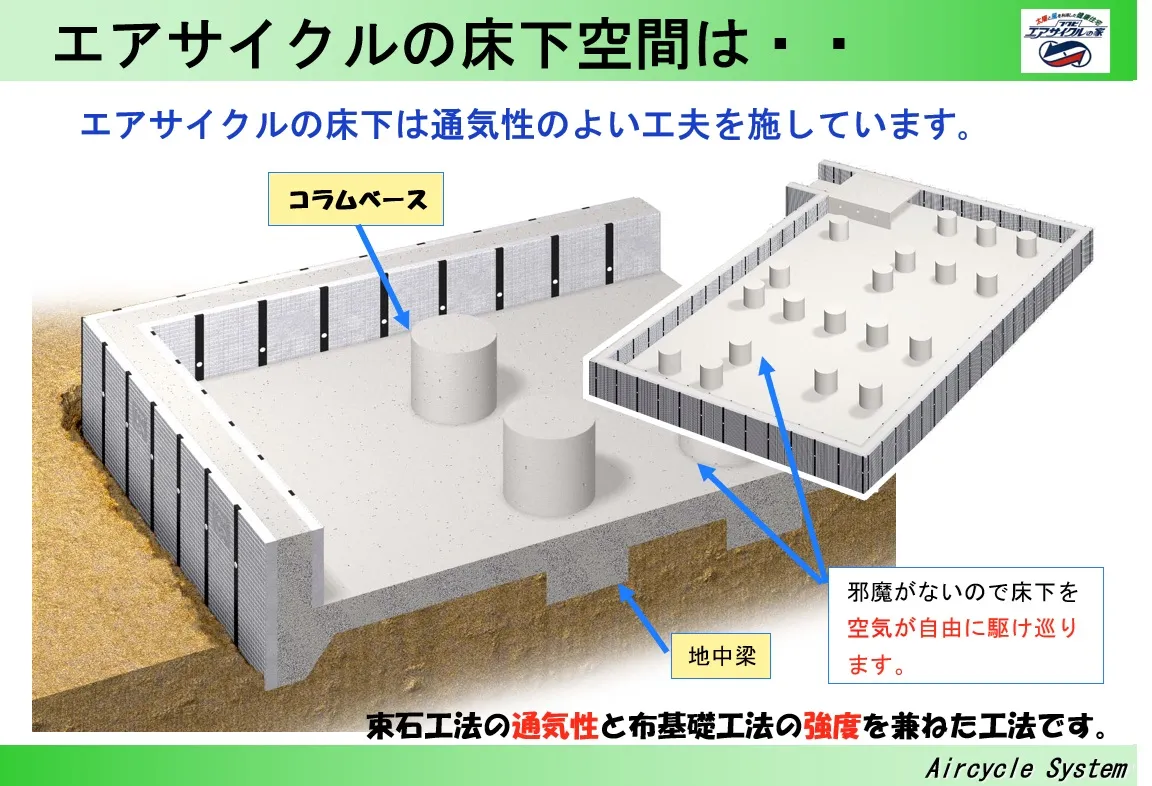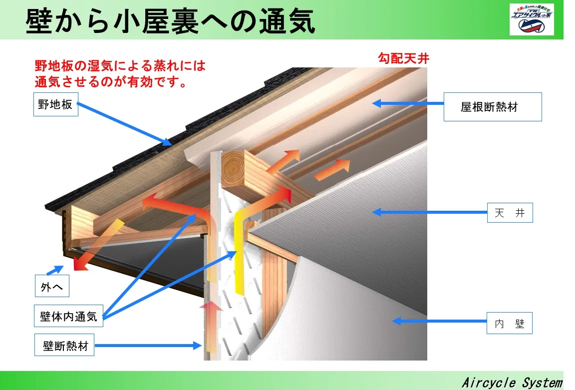 「エアサイクルの家」にはこの二つを同時にかなえる以下の工夫があります。