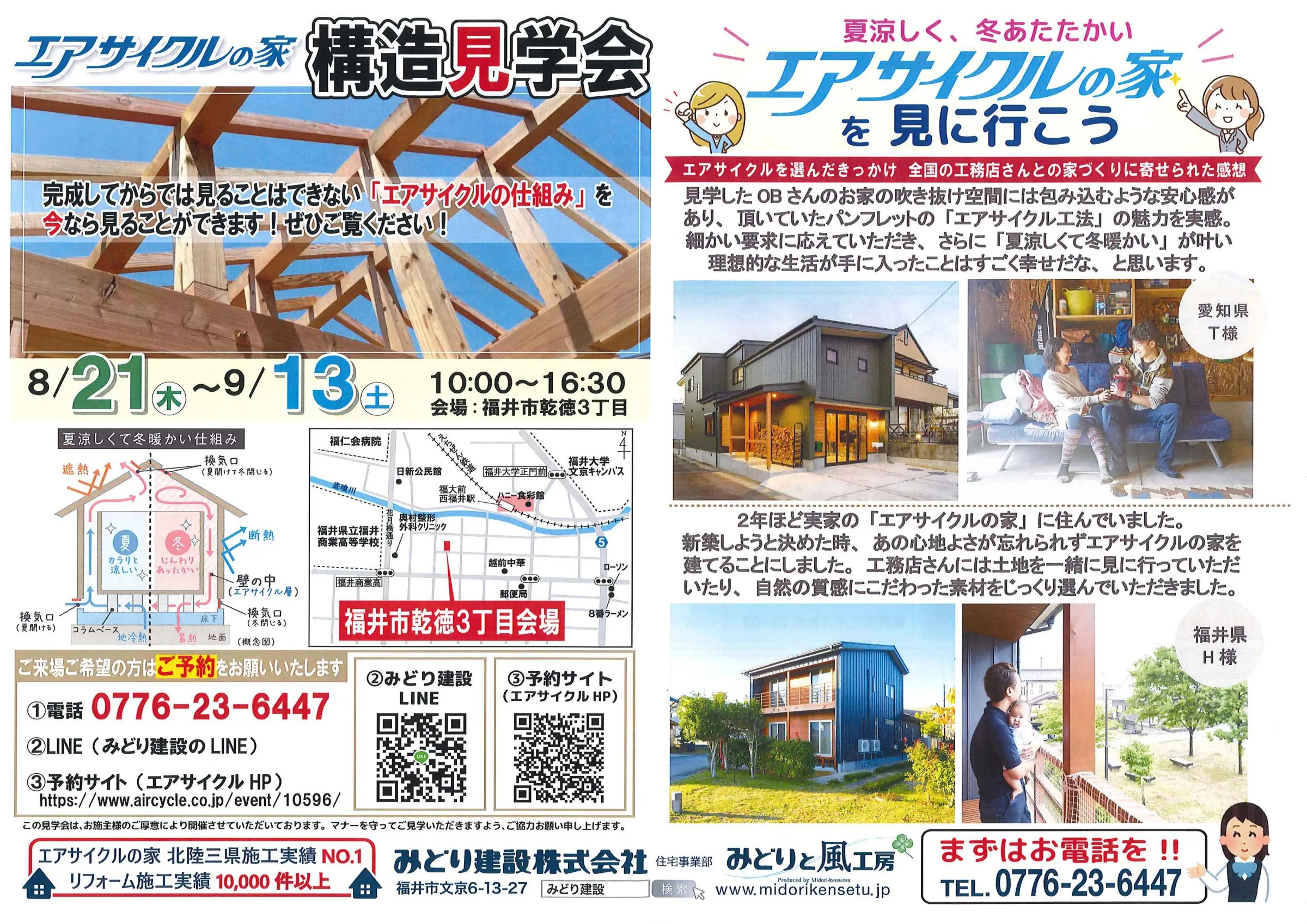 みどり建設では、実際の建物で「夏の涼しさ」や「冬の暖かさ」を体感できる構造見学会や見学見学会を随時開催しています。