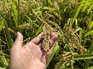 猛暑と水不足にも負けず、無事黄金色に実った米に感謝です。