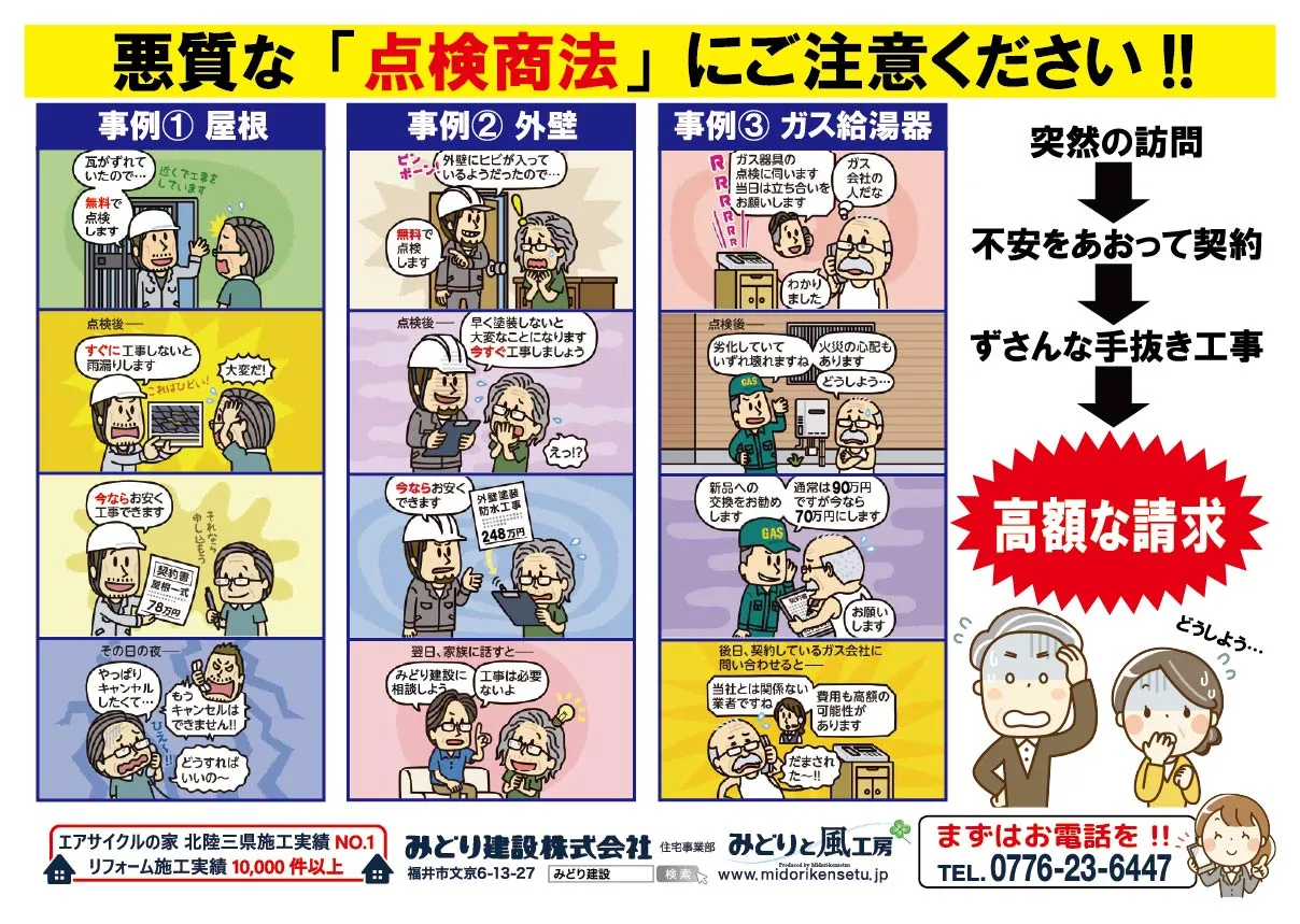 最近、給湯器や屋根、外壁などの「点検商法」が急増しています!