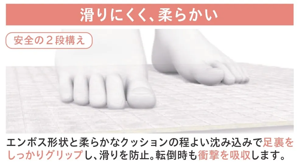 床を変えただけで、安全で快適な浴室になりました。