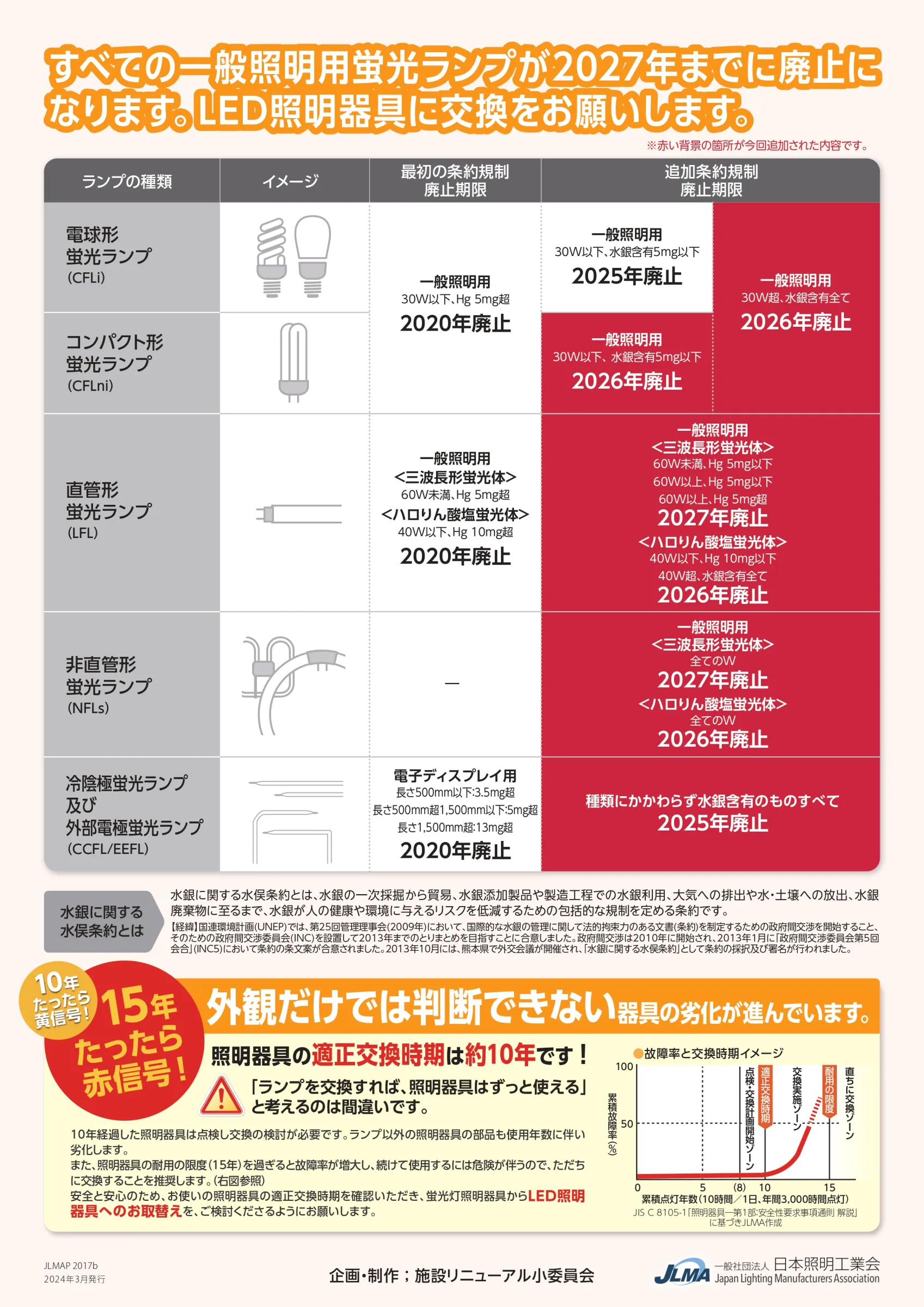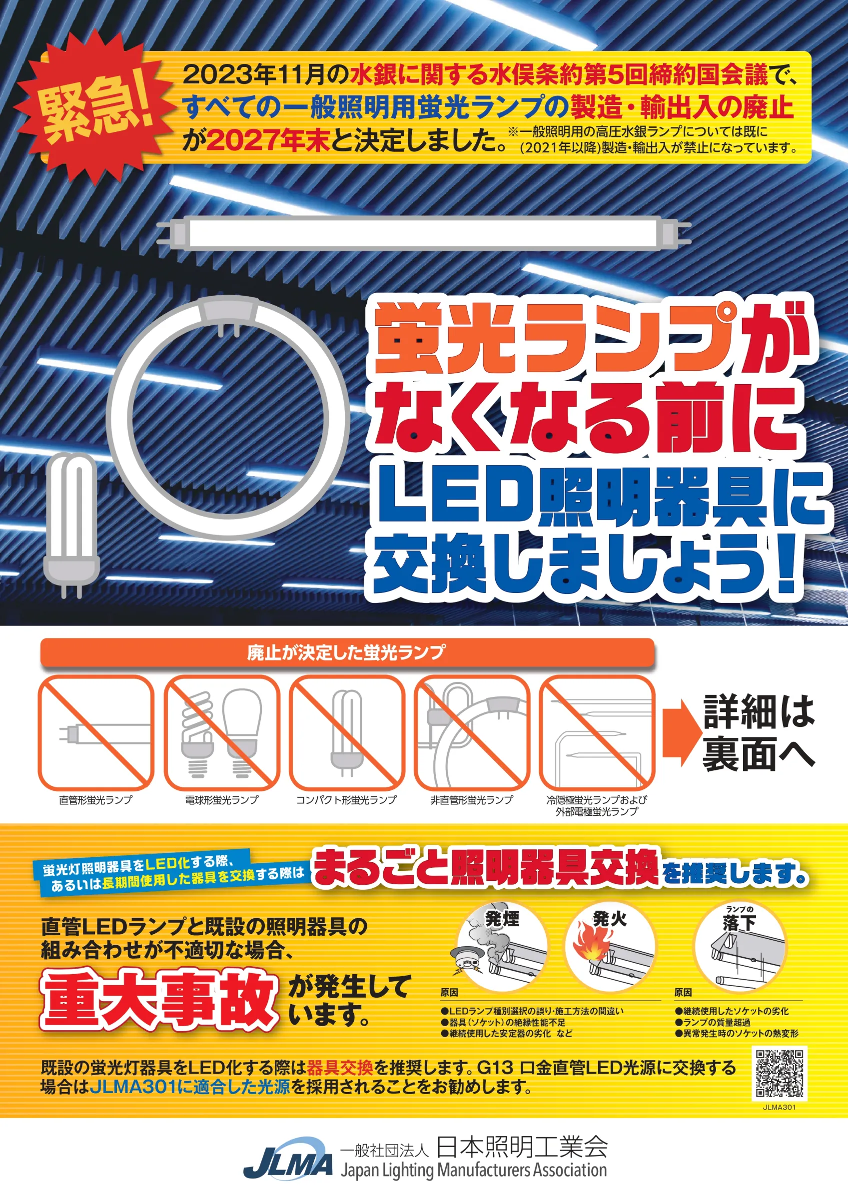 ニュースや新聞記事などでご存じかもしれませんが、2027年末までに蛍光ランプの製造・輸出入が禁止になります。