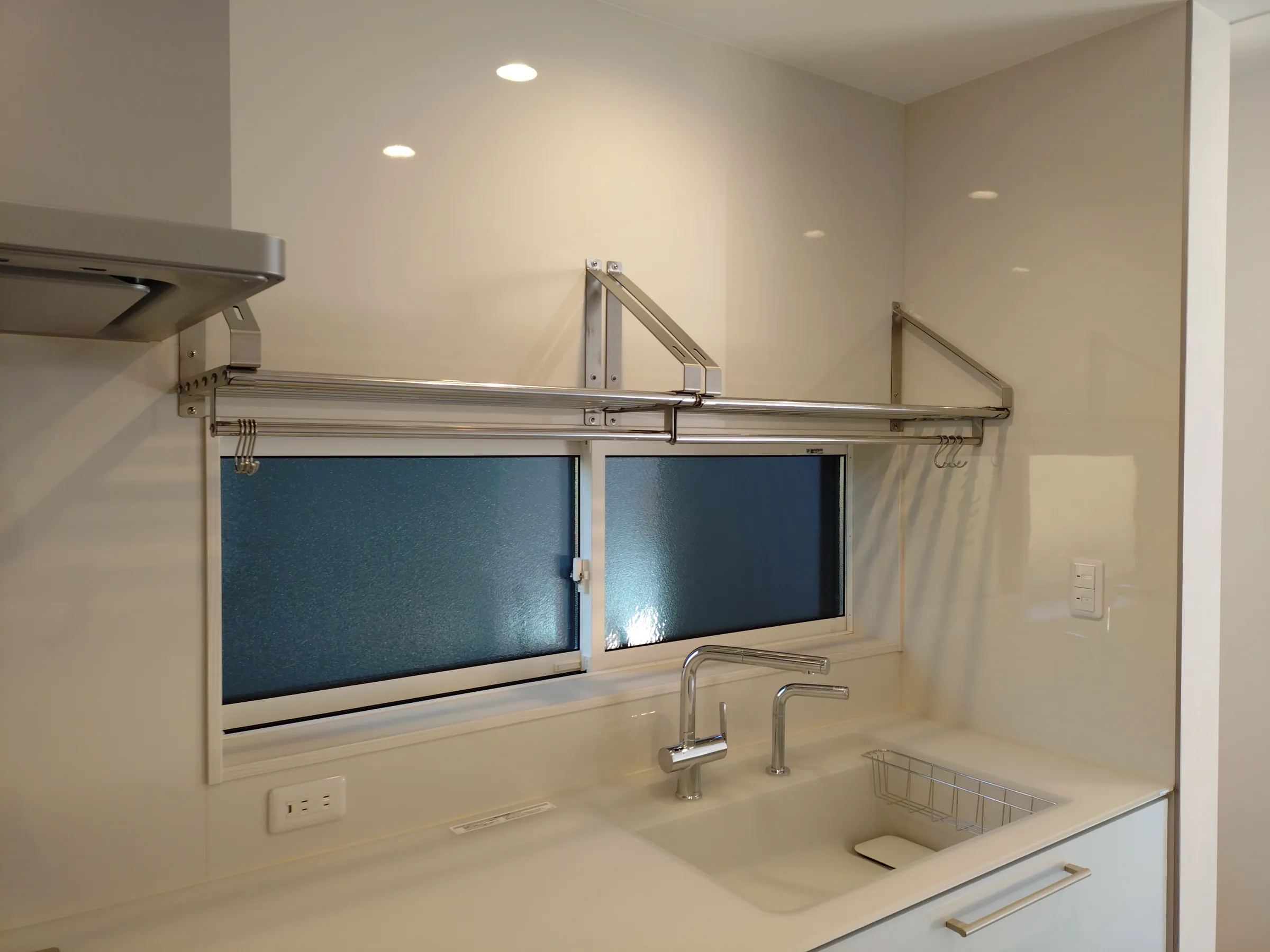 8月末より着工した福井市の大型改装工事現場ですが、キッチンの窓上にステンレスの水切り棚を取付ました。