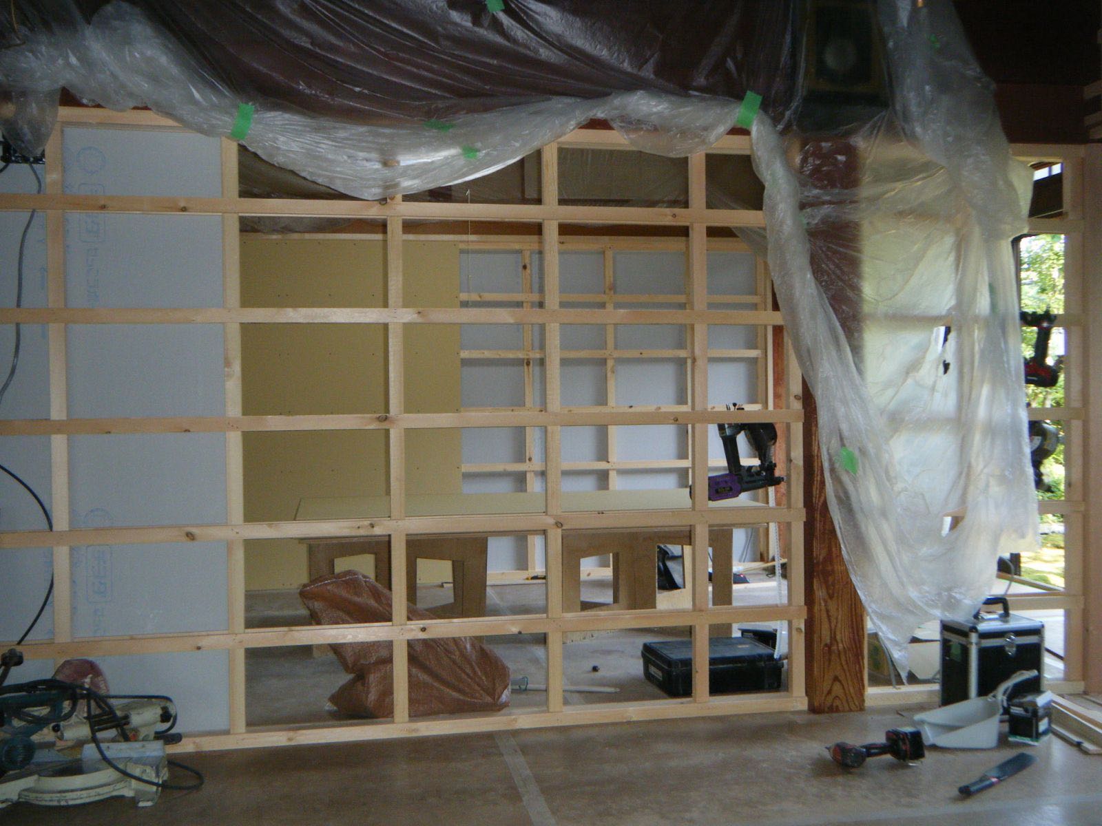 ↑↑以前は引き戸でしたが、壁が新設されます。現在壁の下地造りをしています