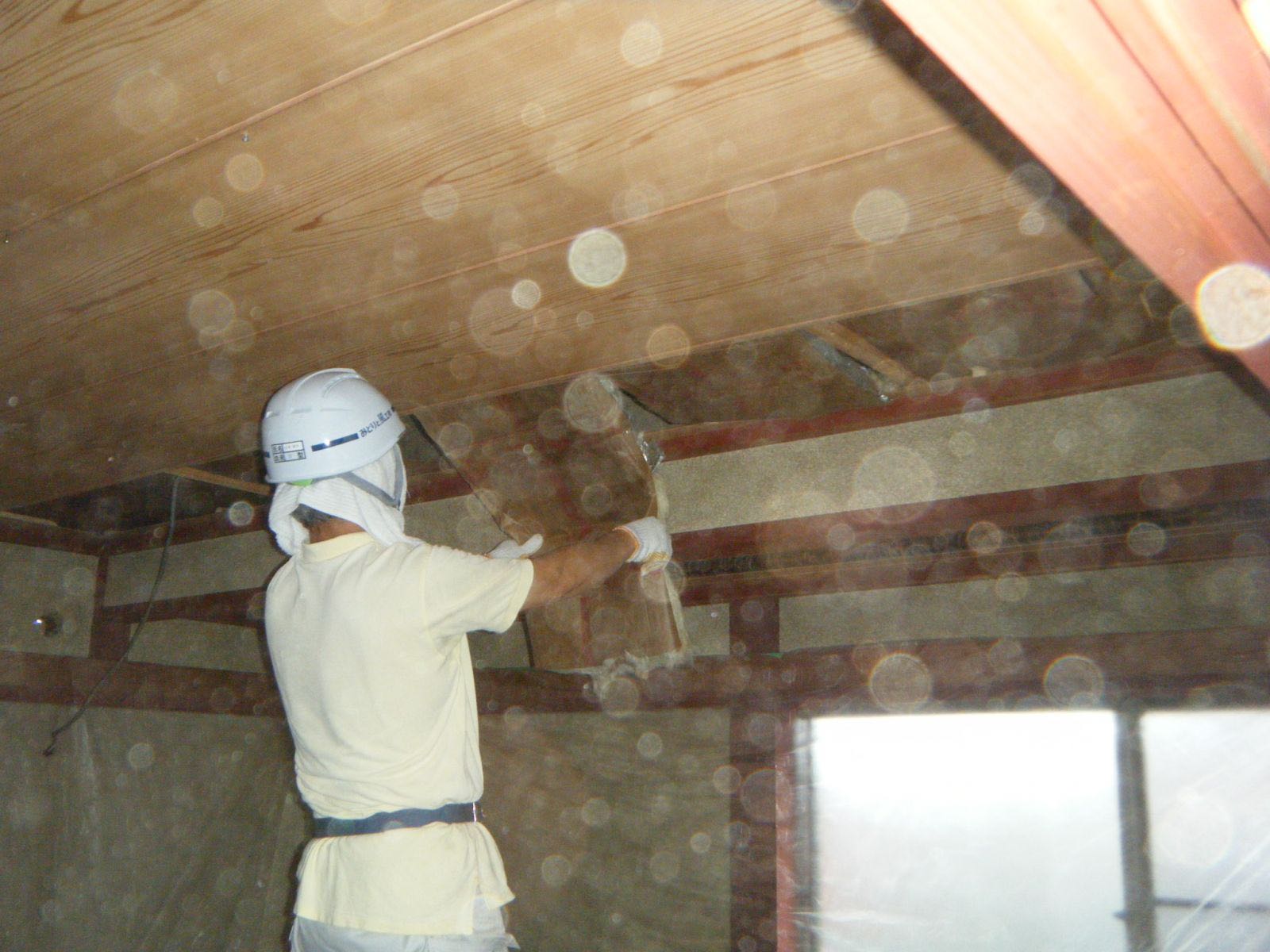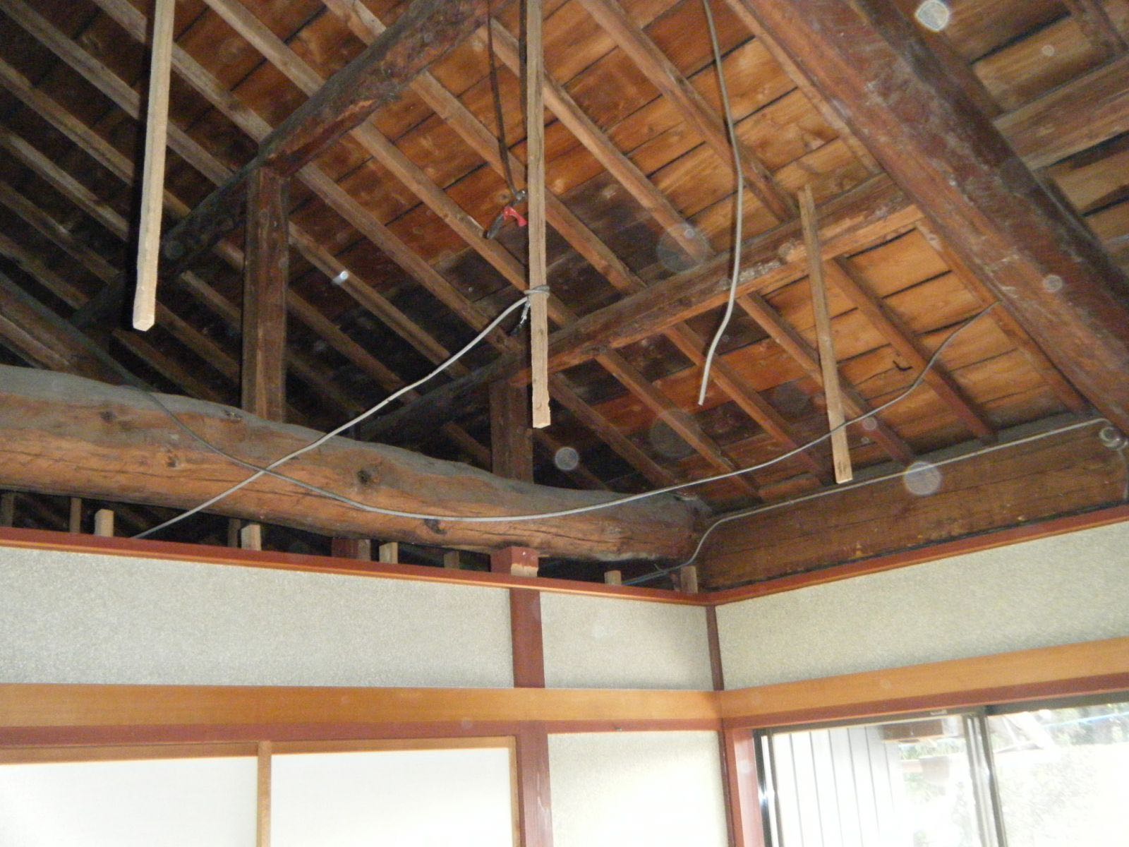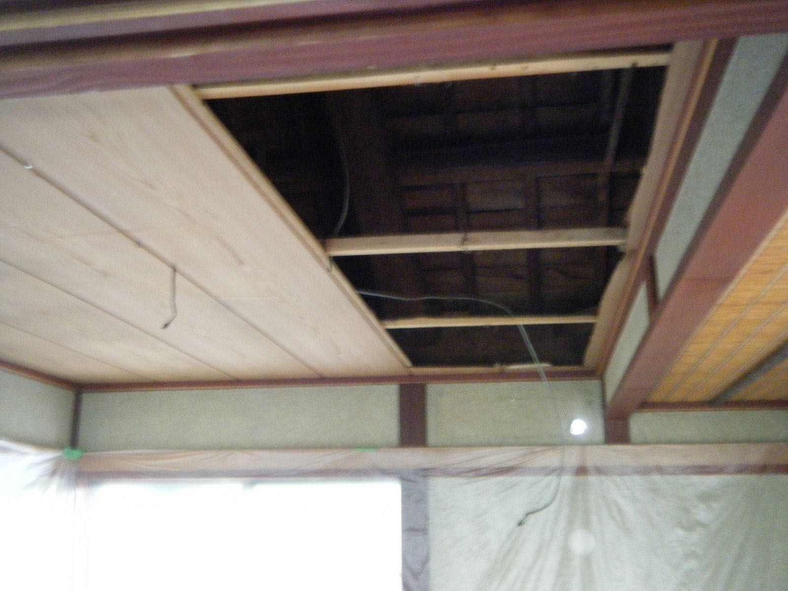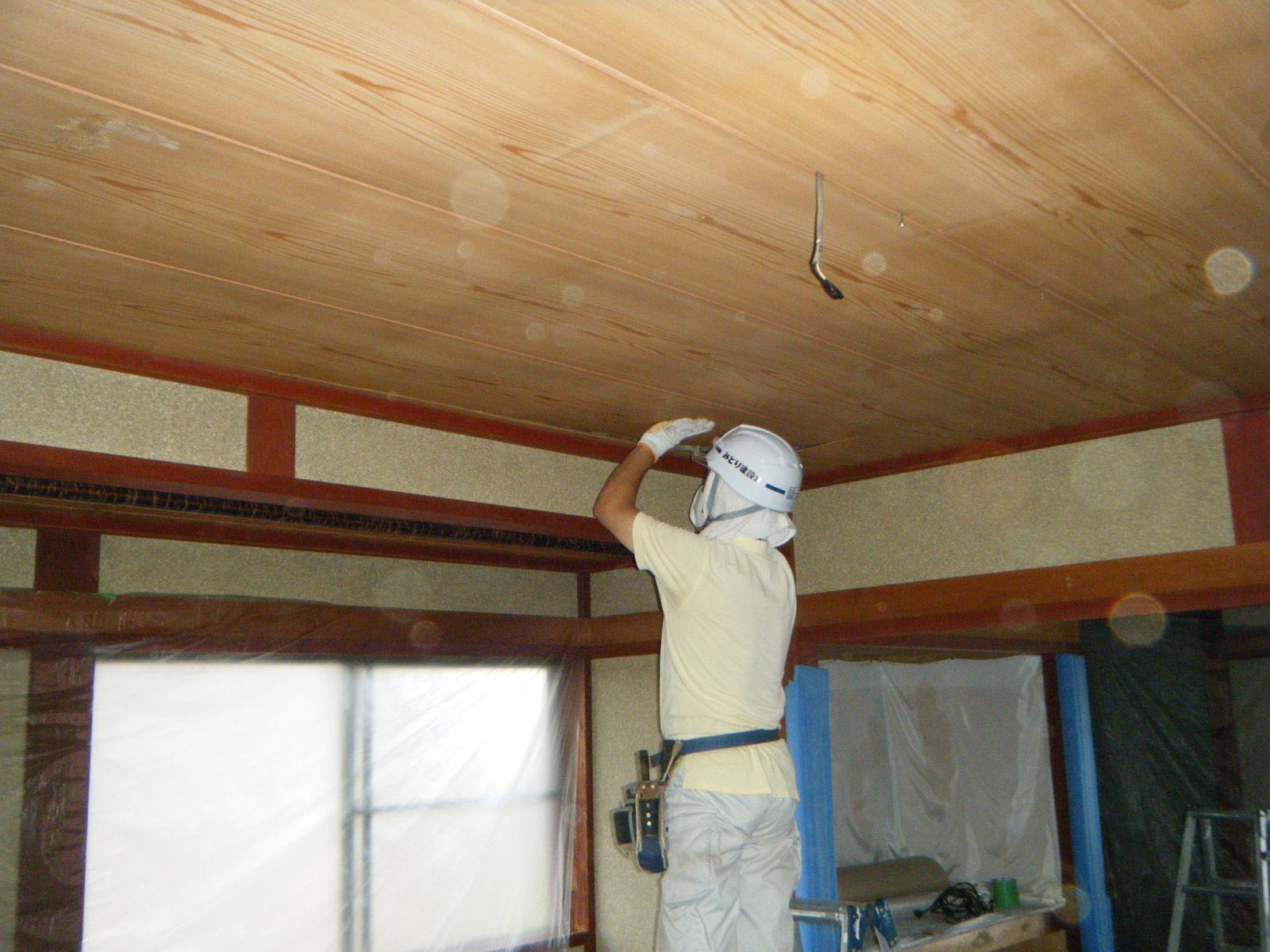 今回は大工さんが解体を行っています、和室の8畳間を二部屋天井を貼り変える工事です![]()