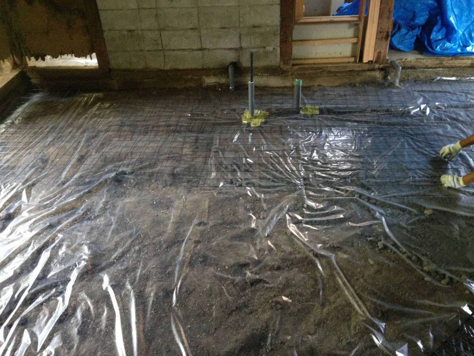 防湿シート敷き状況・ワイヤーメッシュ状況