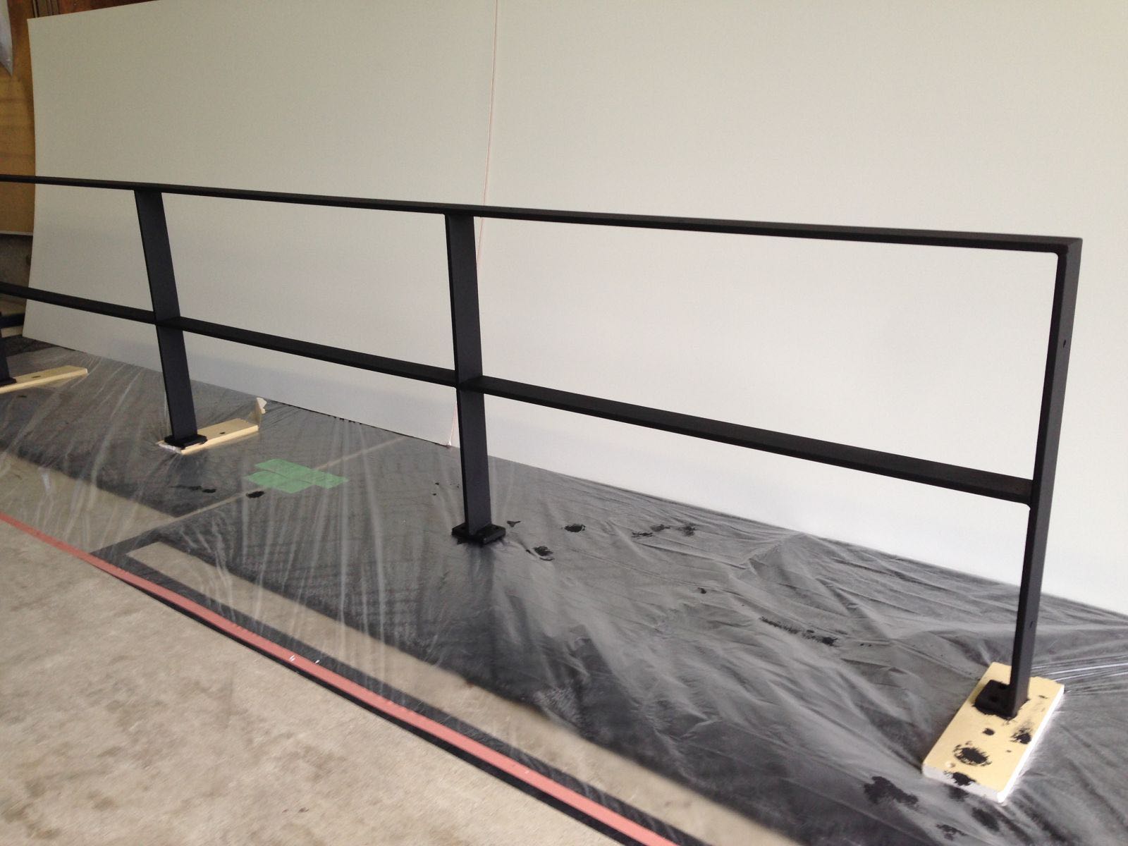 昨日、鉄工所から事務所の倉庫にアイアン手摺りが納入されたので、本日塗装を行いました。