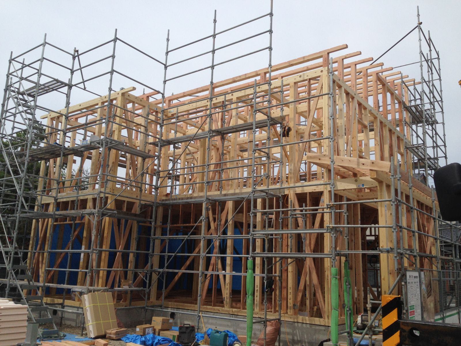 ブルーシートでしっかりと養生して、4時半頃に建て方は無事終了しました。
