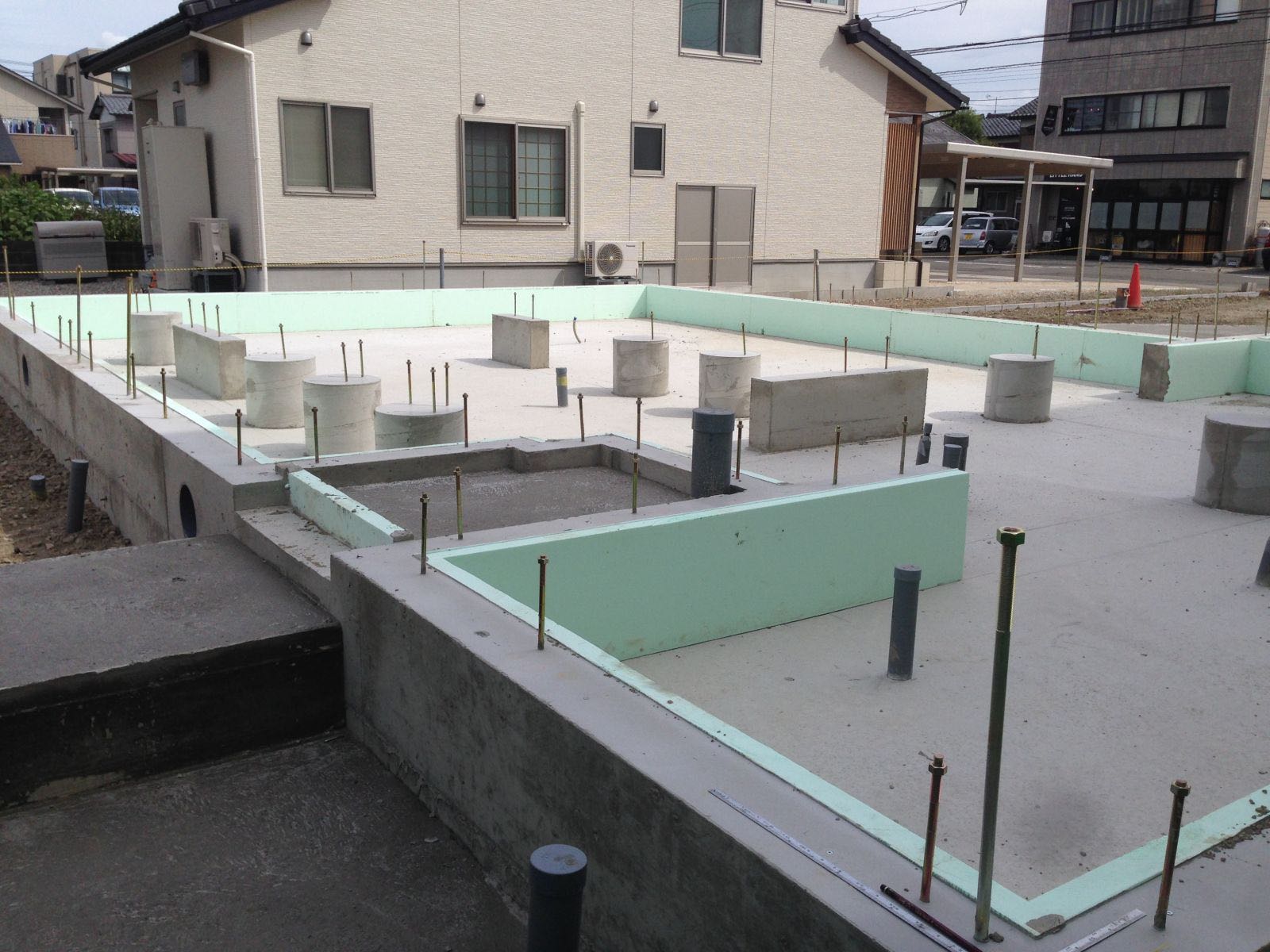 基礎工事中は天気も良く、スムーズに工事は進み、しっかりとした丈夫な基礎が出来上がりました。