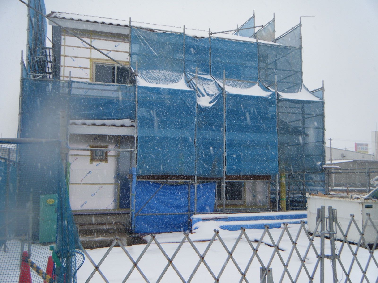 帰りに、春江町のY様邸新築工事の現場により駐車場の除雪を行い事務所に戻りました。