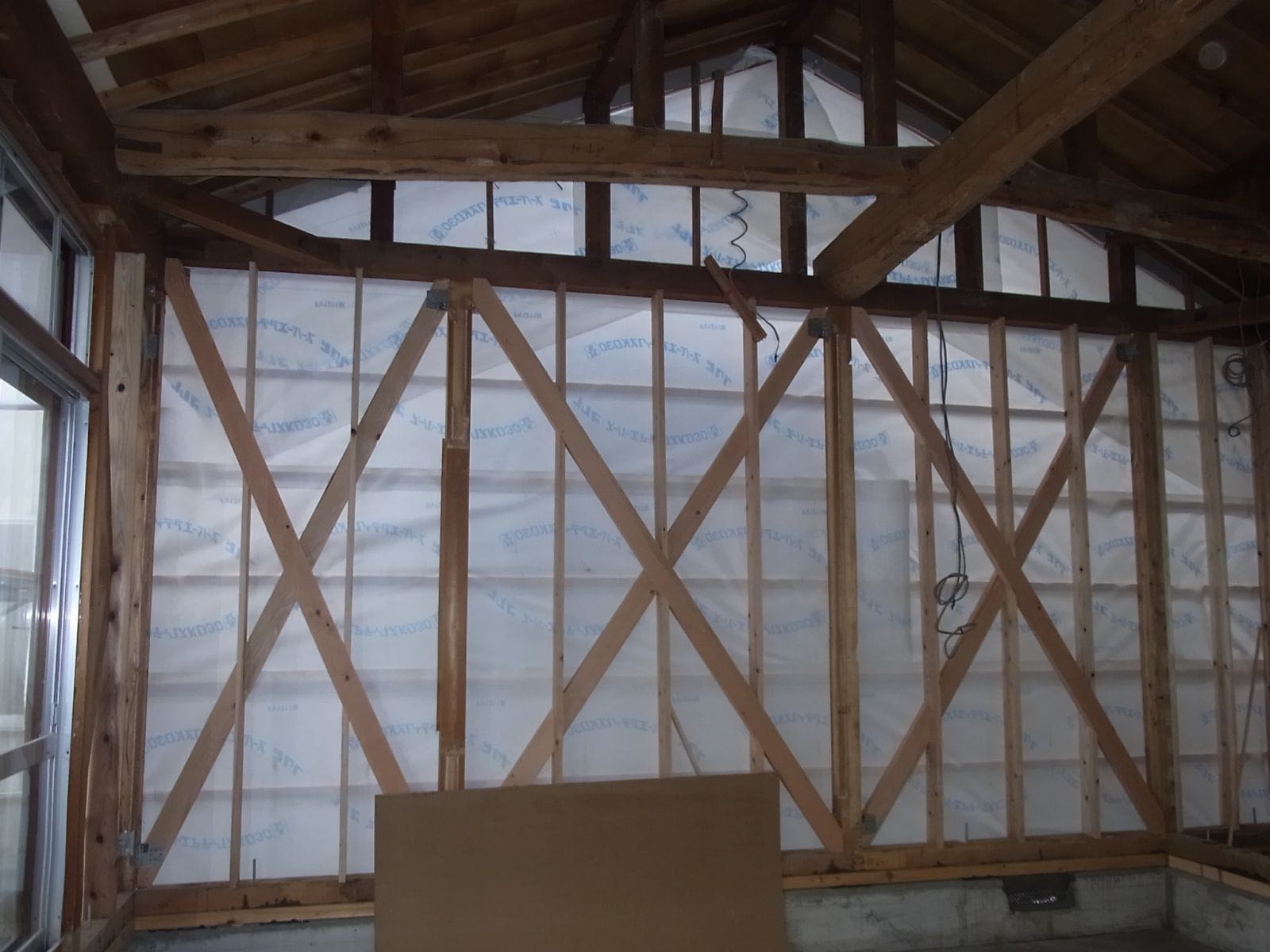 ↑1階の筋交(柱と柱の間に見える交差している木材)です。