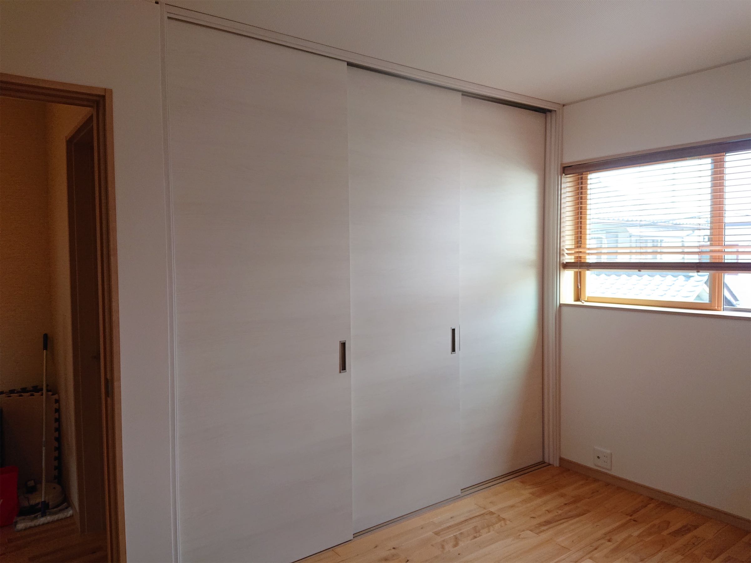 今回、3本の引き戸2部屋に仕切ることにし、扉は床から天井までの特注です。