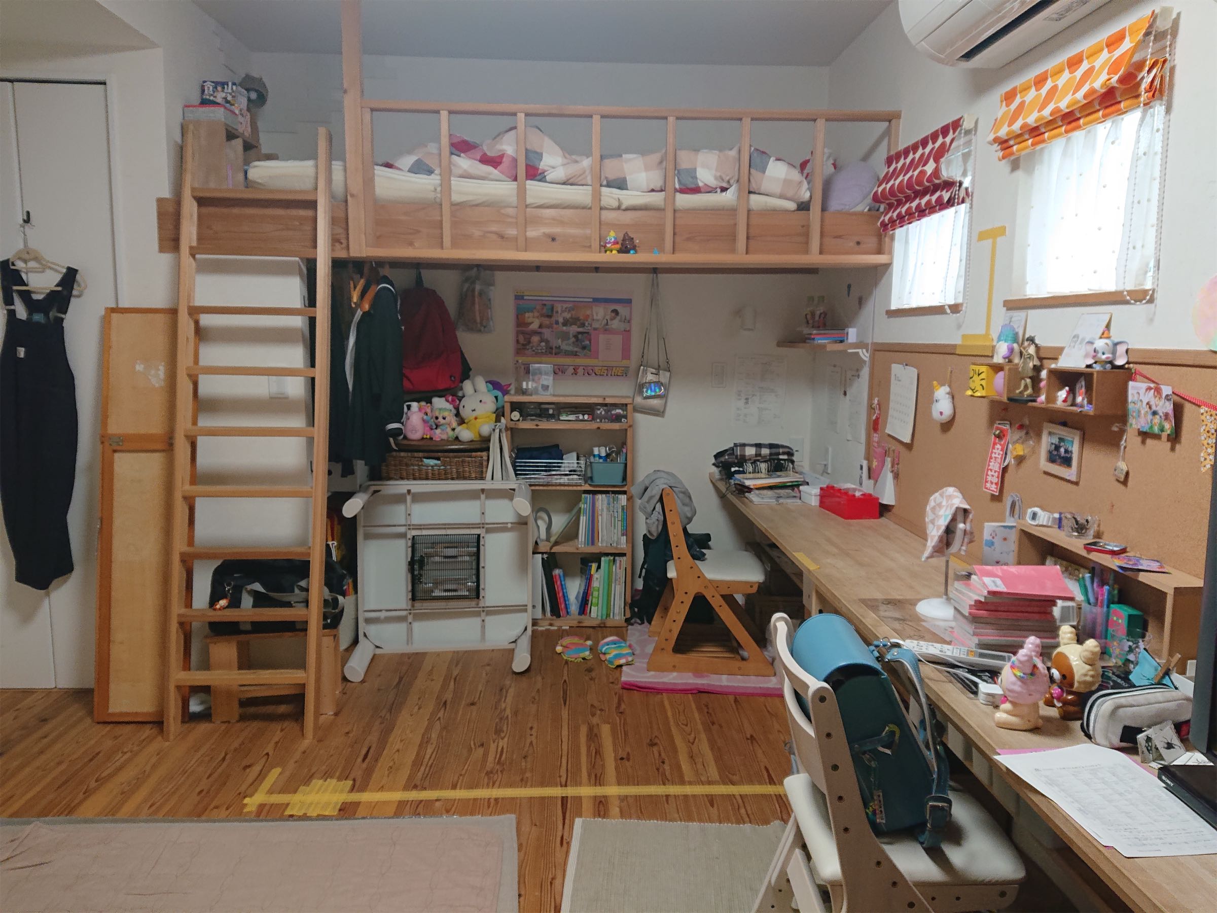 我が家では子供部屋(約12帖)を長女(中3)長男(小6)次女(小4)の3人一緒に使っています。