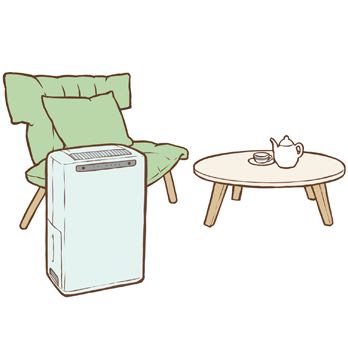 また、扇風機や、サーキュレーターを除湿器の対角に置き、併用して空気の流れをつくることで、より効果的に除湿できます。