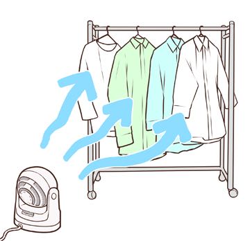 部屋干しをする際にも、除湿器や、扇風機、サーキュレーターは大活躍。