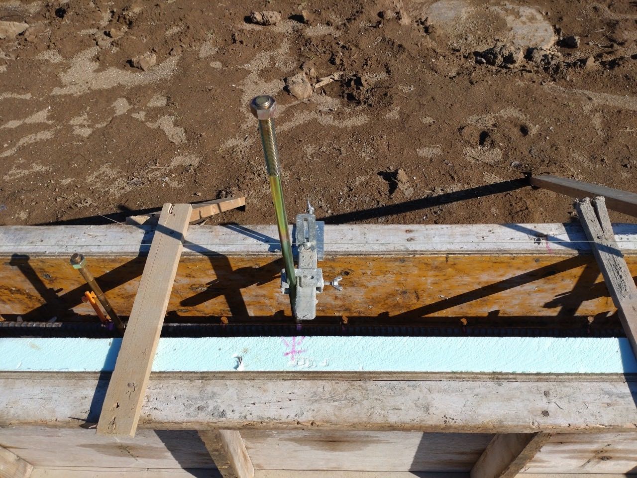 ↑ アンカーセット(コンクリート打設前にアンカーボルトをセットして、図面通りの位置に配置されているか確認します。)