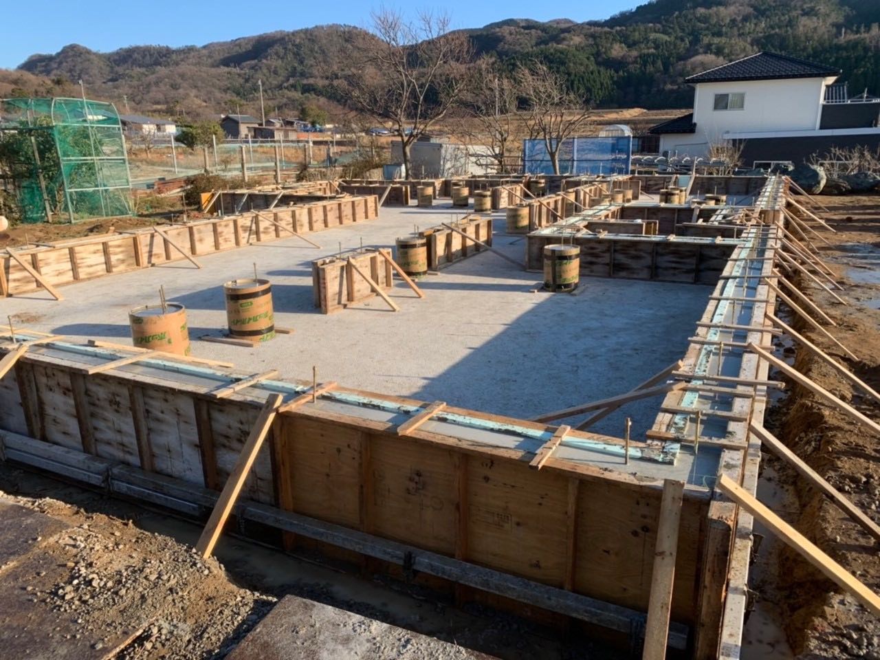 年末の雪が降る前に立上りコンクリートが打設出来たので良かったです。