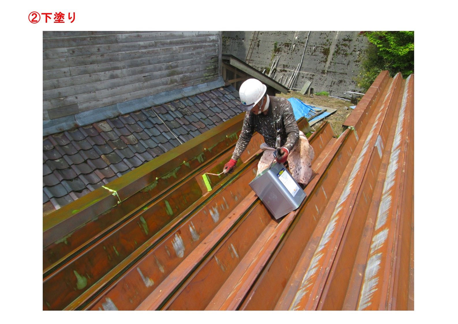 下塗りには、屋根材と中塗り・上塗りを密着させる役割があります!