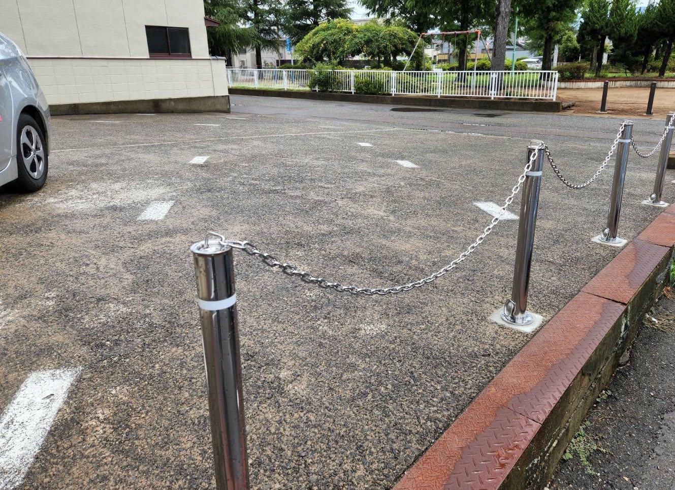 こんな悩みも、ポールとチェーンが目印になり、駐車しやすくなりました