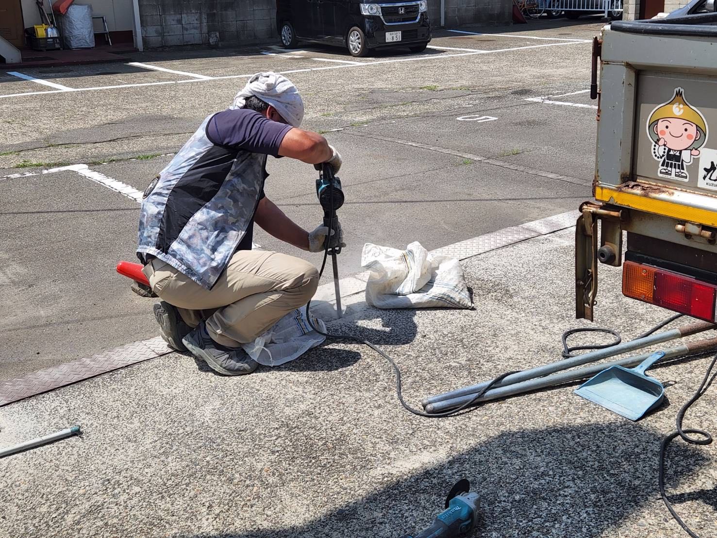 ↑職人さんがコンクリートに穴をあけているところ