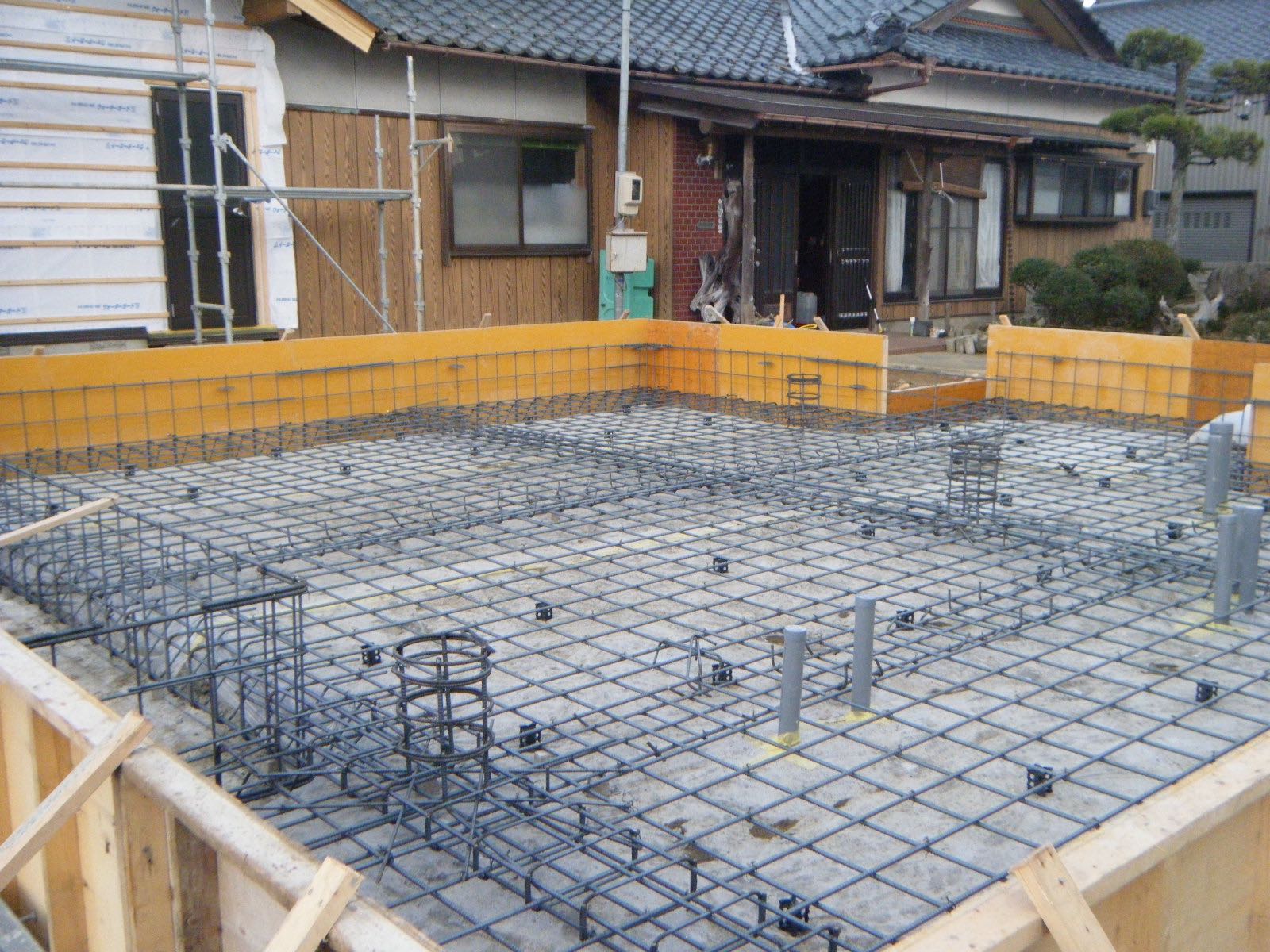 この検査は、あんしん住宅瑕疵保険の検査員が、基礎の鉄筋組が、図面通り施工されているかや、鉄筋の太さや継手の長さ等をチェックします。