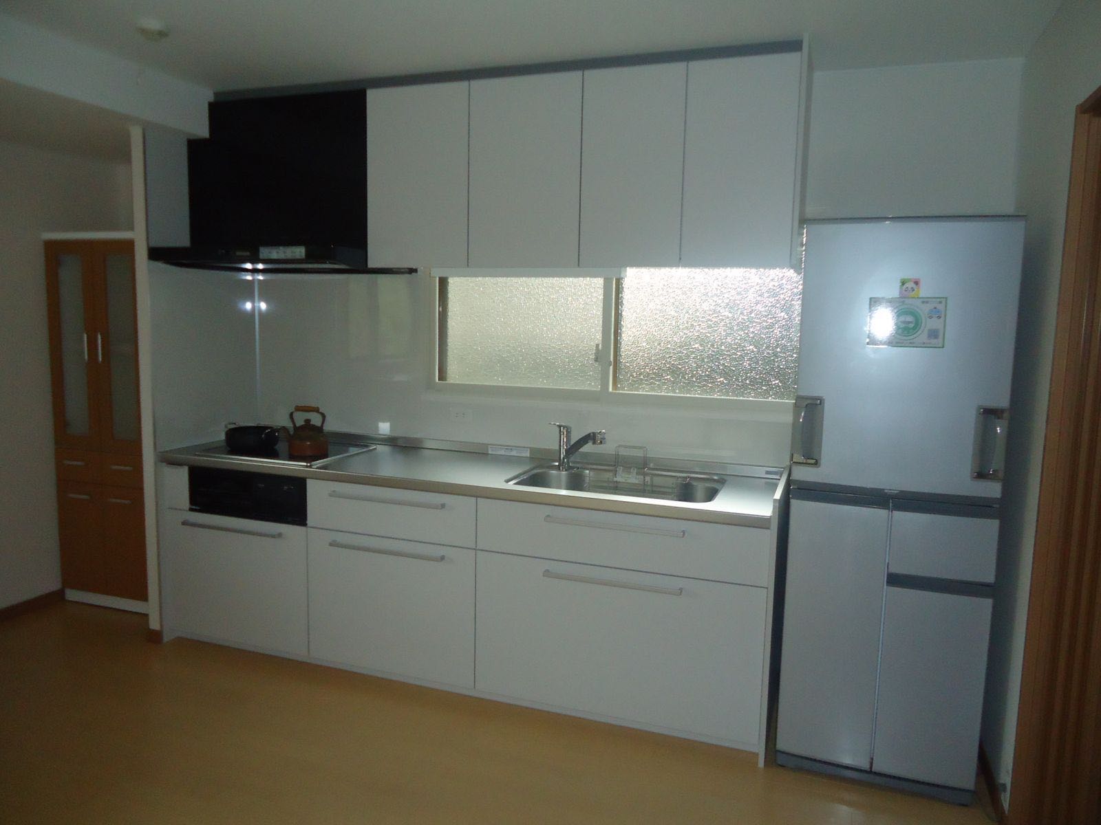 新しいDKに冷蔵庫を移動するため、辻チーフ、広部さんと力を合わせてキッチンの横に綺麗に納めました!![]()