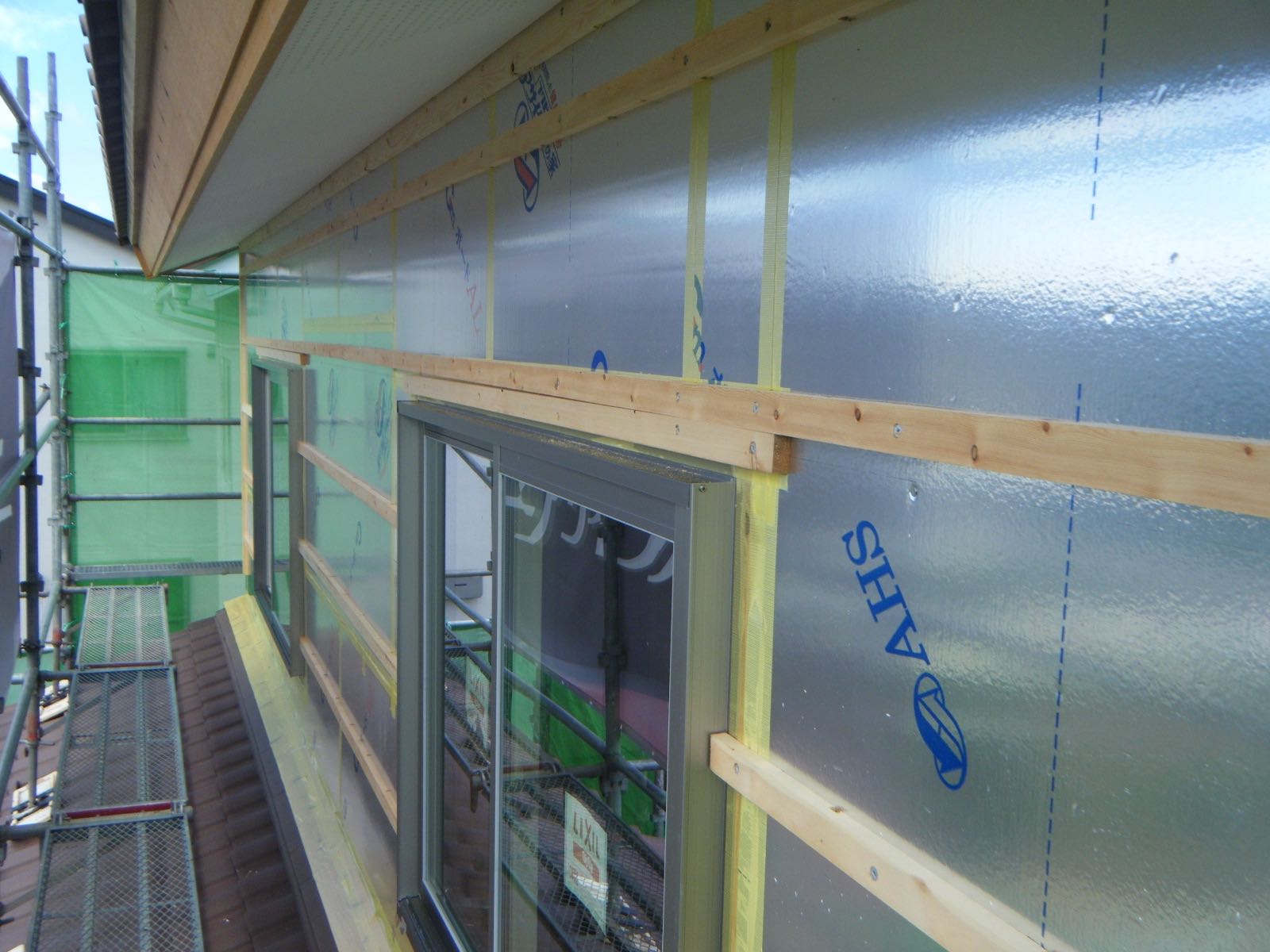 来週の火曜日に気密測定をして、問題なければ、来週末より外壁施工が始まる予定です。