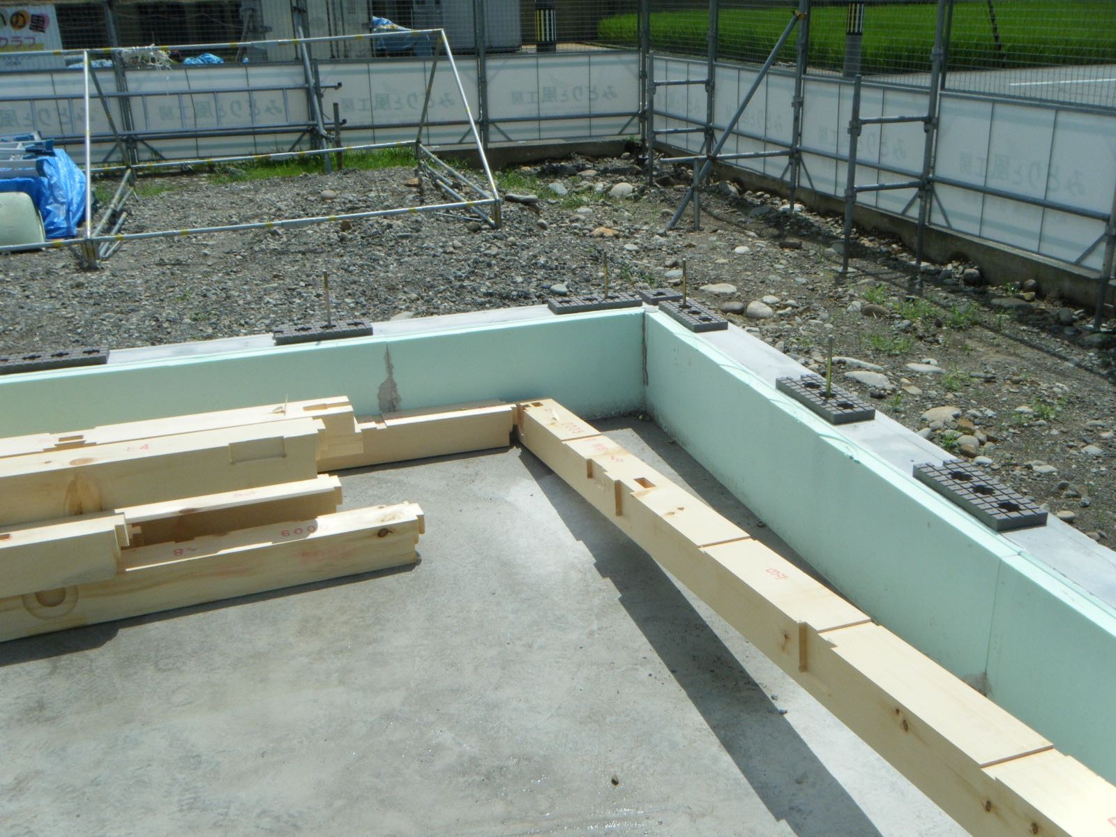 先日までの雨の日が多かったですが、今日は天気も良く絶好の土台伏せ日和でした。