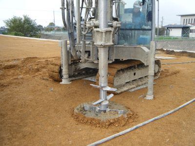 柱状改良工事とは、軟弱地盤が2メートル以上8メートル以下の場合に用いられる工法で、土の中にコンクリートの柱を造ってしまう工法です。