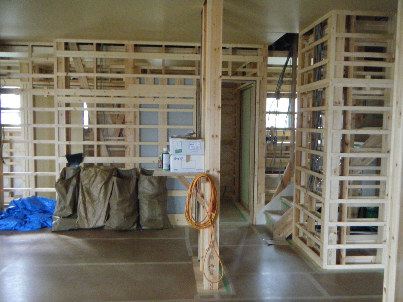 内部は現在造作工事中で、胴縁下地の施工中です。