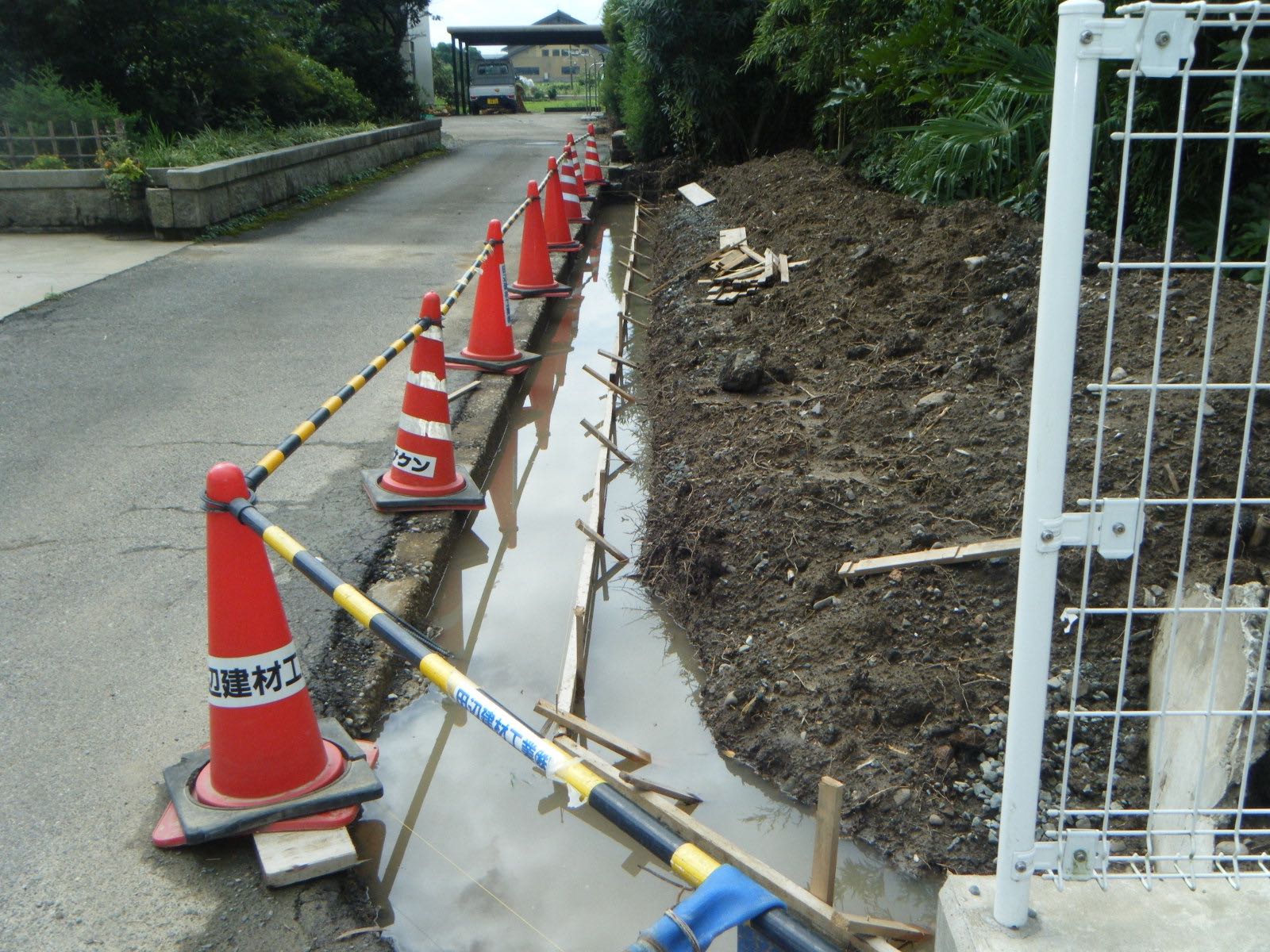 フェンスの基礎工事中は、雨が多く、なかなか工事を進めることが出来ず、予定より1週間ほど遅れましたが、無事工事を終えることが出来ました。