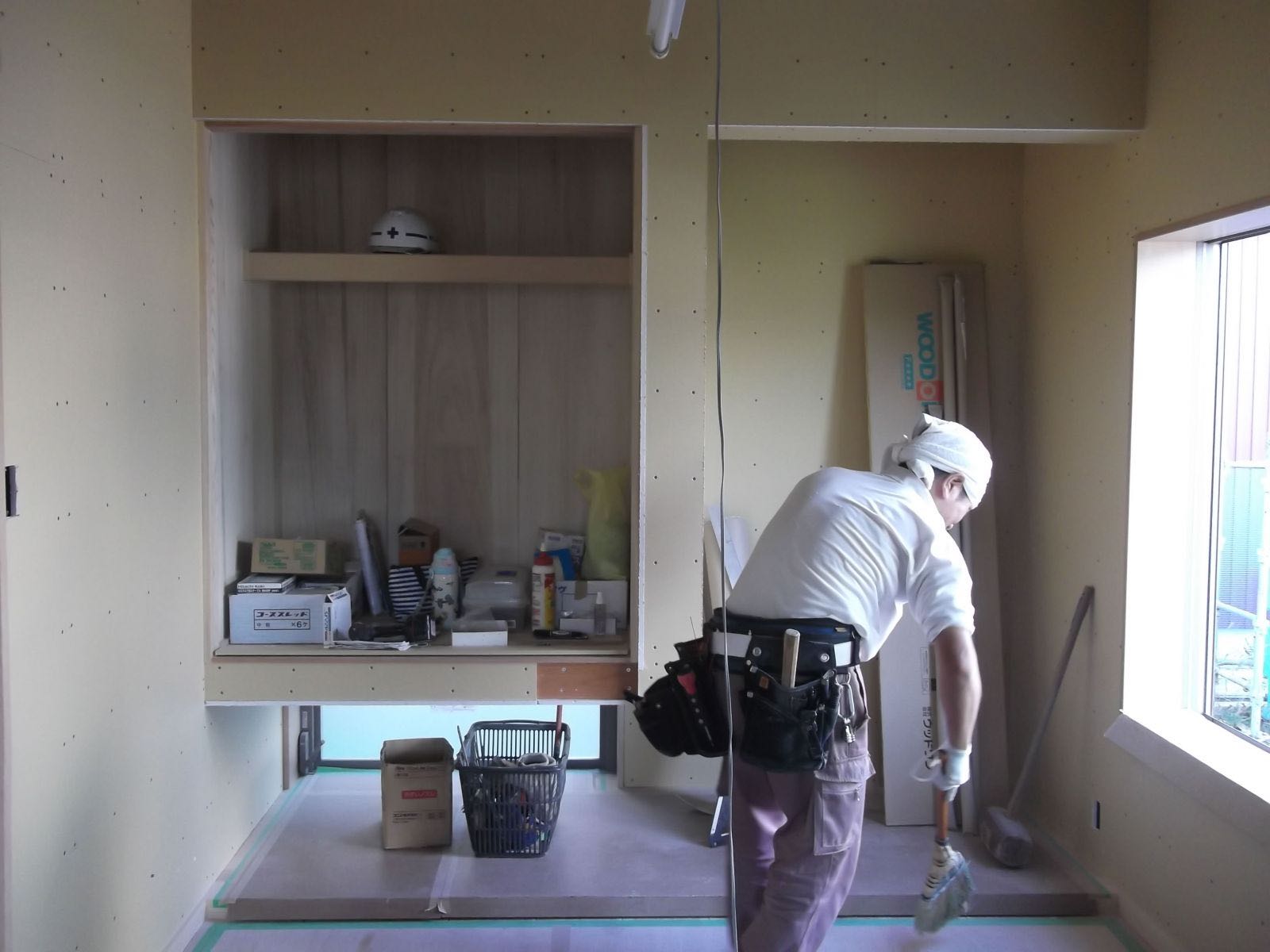 仕事の合間に、棟梁の和泉さんがきれいに掃除をしていました。